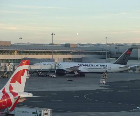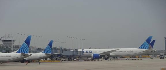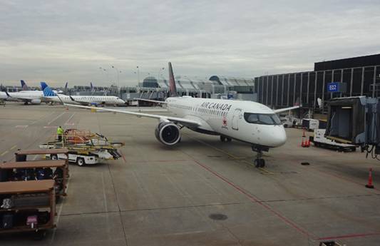 I saw that Air Canada had given me an aisle seat. However I found an Air Canada information desk near my gate and was able to get my seat changed to a window for no additional cost. I logged into the airport’s Wi-Fi and went online. I also photographed a few United Airlines planes.