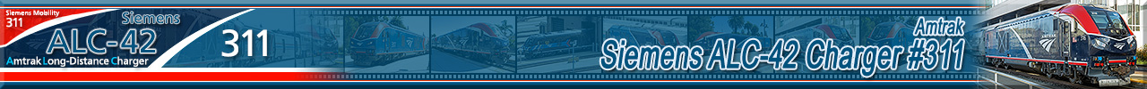 Built by Siemens Mobility in May 2022 and numbered 311. This series of locomotives is a long-distance variant of the Siemens SC-44 Charger used on state-sponsored corridor trains. Historical information about this locomotive provided by www.amtrakbythenumbers.com. |