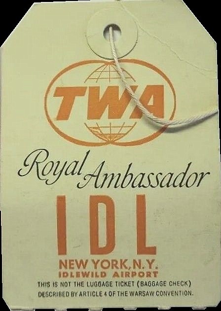 TWA baggage tag marked IDL.