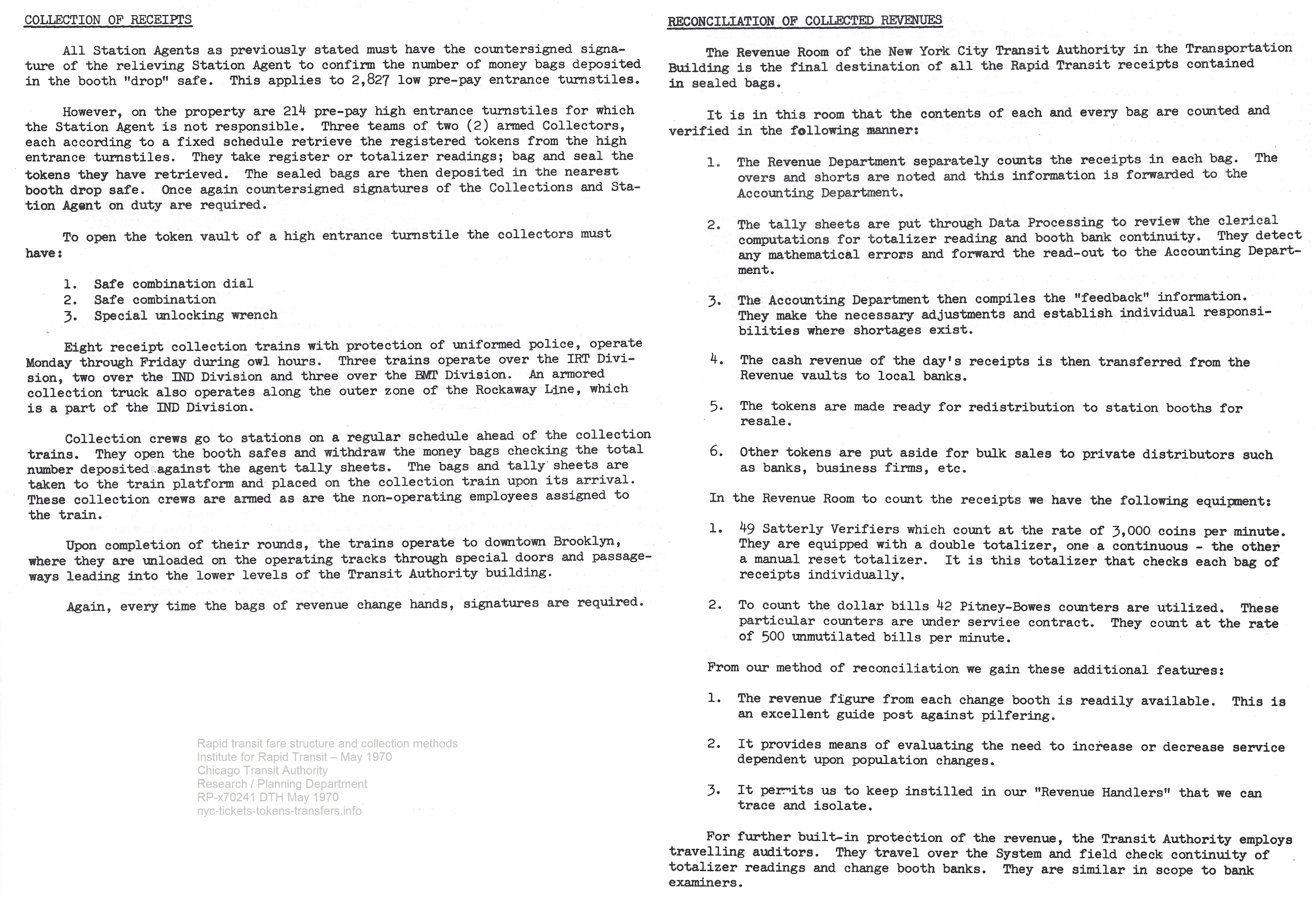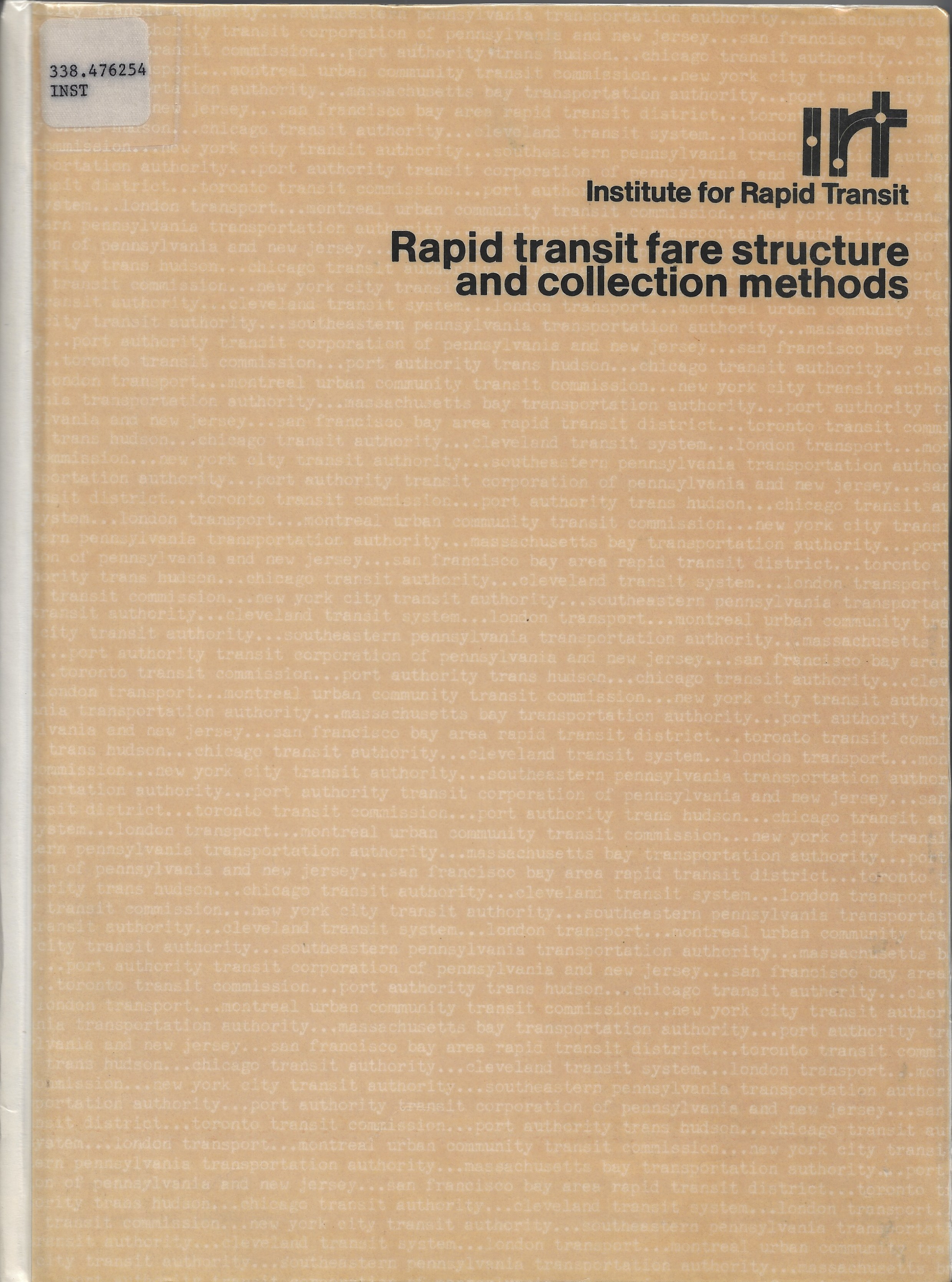 | Rapid Transit Fare Structure & Collection Methods | Institute of Rapid Transit | 1970 |