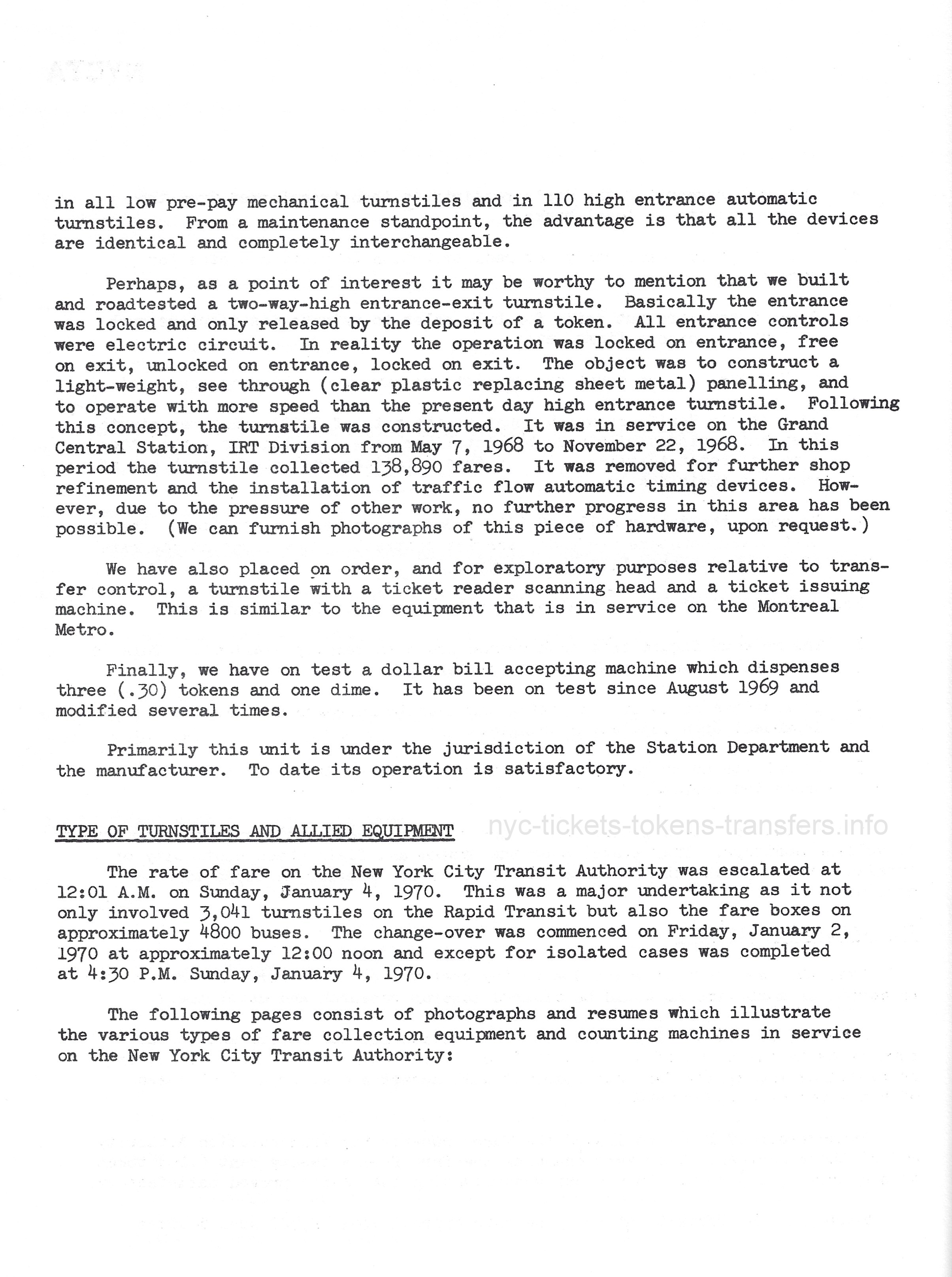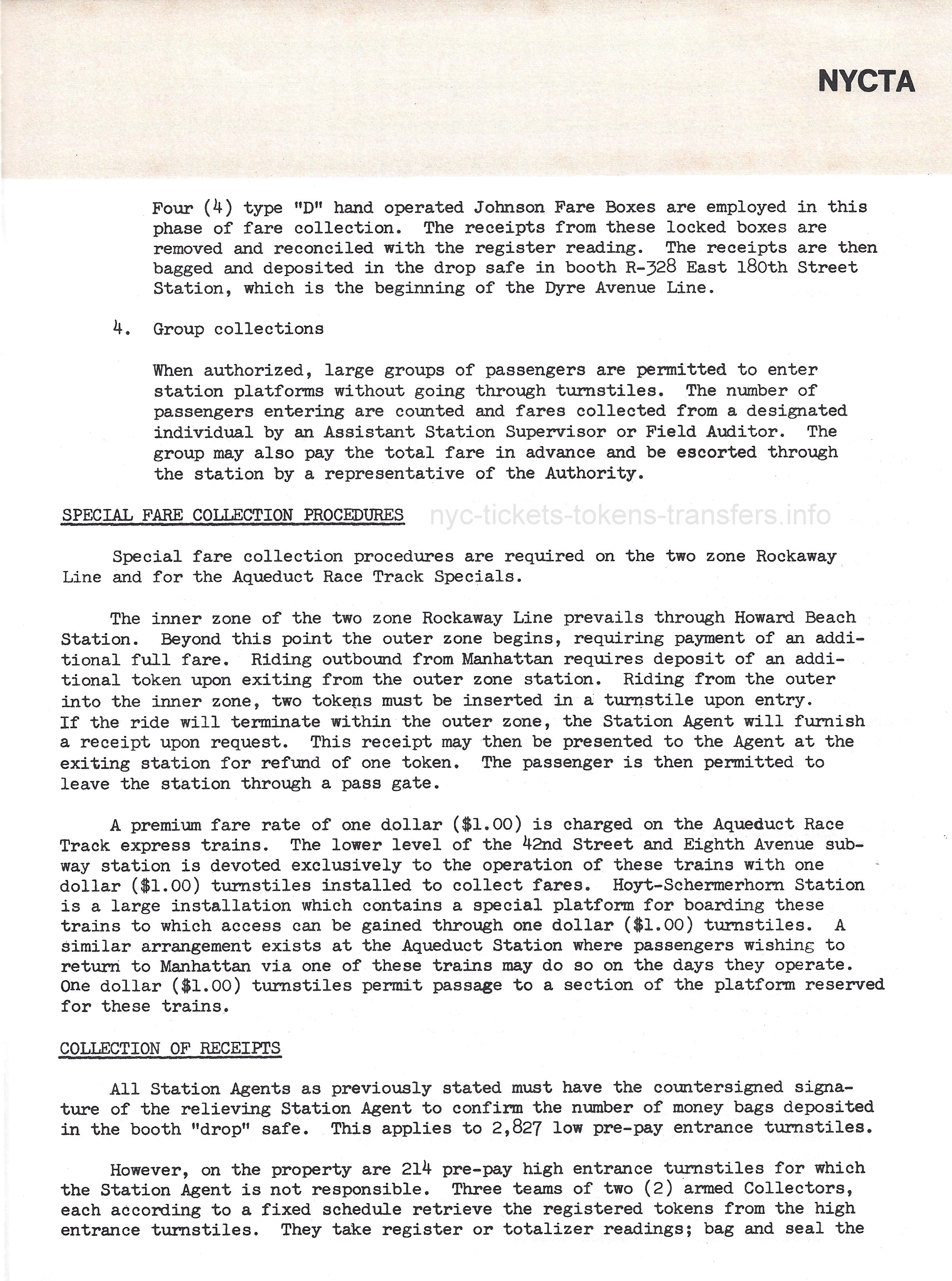 You have found the most detailed and informative compilation of information regarding the fiscal issues and fare control (tickets, tokens, transfers, passes, zone checks, ticket choppers, turnstiles and fare boxes) of transit companies located in New York City. At the current time, we refrain from from digital / electronic methods of payment such as MetroCard and OMNY payment systems.