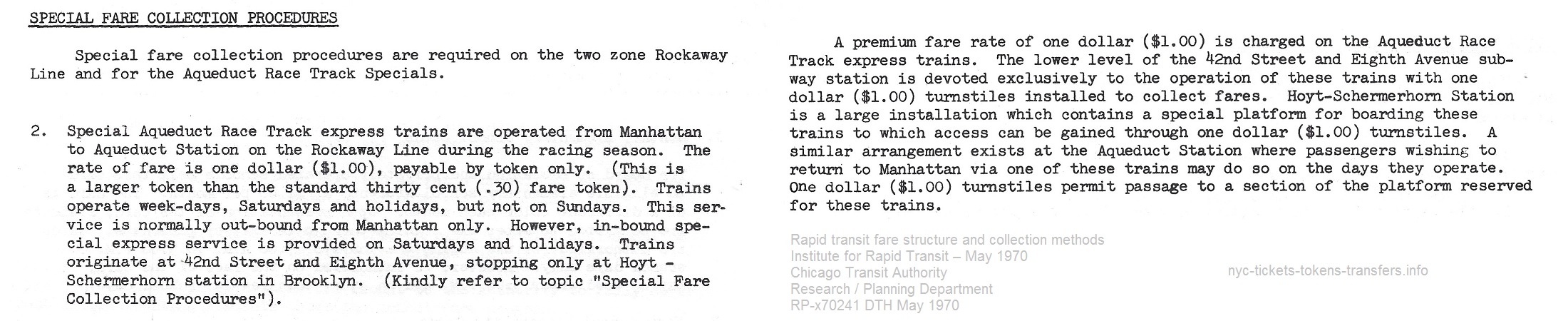 | July 3, 1981 | .75 | $4.25 | $5.00 | $1.80 | $1.50 | $45.00? ($2.25?) | This era of JFK Express train service also provided service to the Aqueduct Racetrack when racing was in session and upon request of the passenger. |