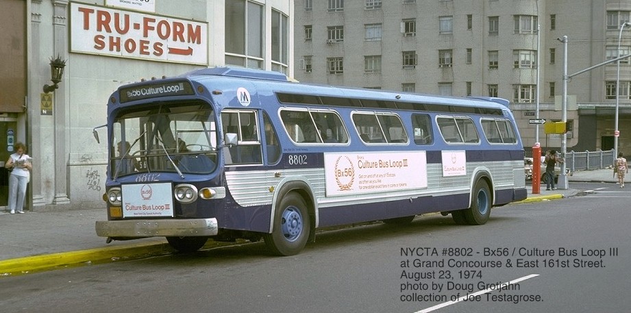 The Culture Bus Loop I (M-41 Route in Manhattan) and Culture Bus Loop II (B-88 in Brooklyn) operated from May 26, 1973 through September 3, 1984 and on weekends and holidays only. The Culture Bus Loop III (Bx-56 in the Bronx) operated briefly from August 3, 1974 through September 2, 1974, and a Staten Island Culture Bus Loop operated sometime between 1974 through 1977.