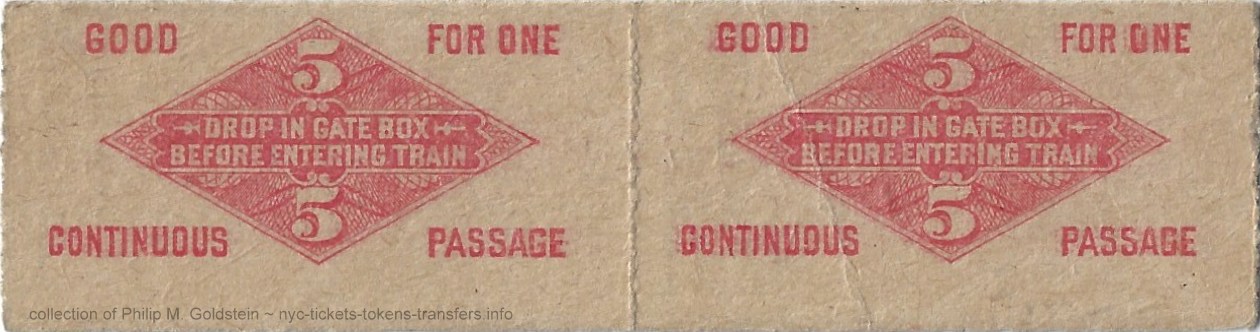 reverse same as obverse | March 19, 1950 to December 13, 1951 - 15 cents (ticketed passengers only) 16mm, brass, solid Atwood-Coffee NY630AI |