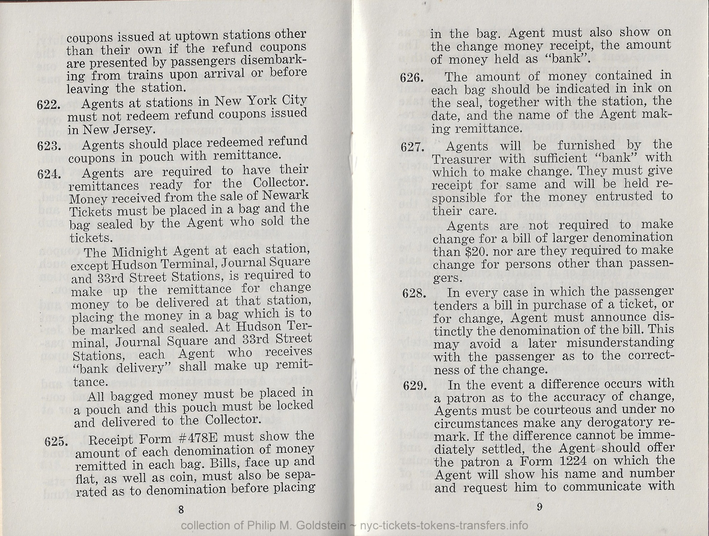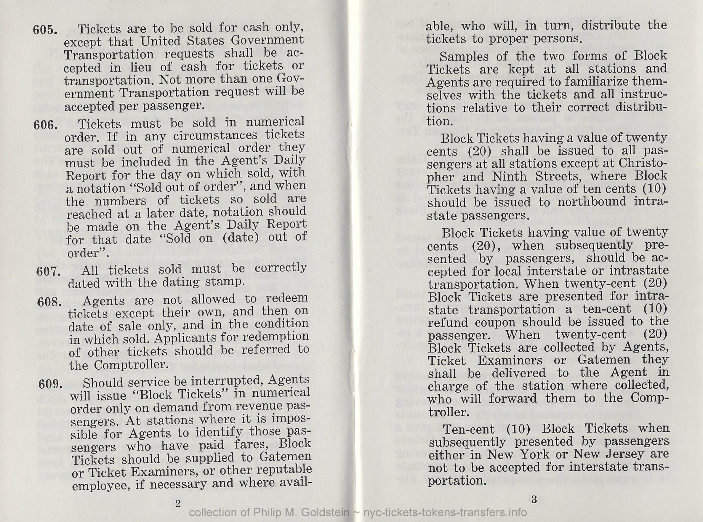 | 8 cents (redacted) - ca. 1938? Exchange Place - A Rand McNally 2½" x 1⅝" This ticket evidences that the holder is entitled to ride on trains of this Company to the face value hereof or to refund of that amount upon application to Agent at any stationof the Company. If cash refund is desired holder wil sign below. It appears the numeral 8 was blocked out upon signature refund of the 8 cents. |