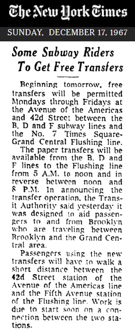 In most cases, no physical connections existed because of their being from separate entities prior to the unification, but now being unified under a single nickel fare; some form of ticket needed to be presented to the clerk at the ticket / token booth of the second connection.