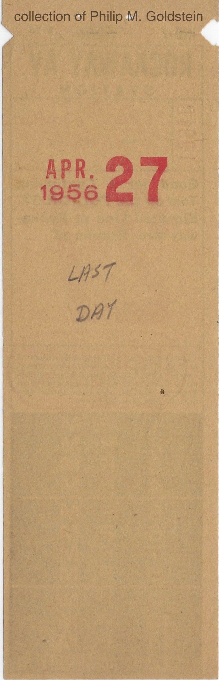 portion (Jay Street to Broadway) of the Myrtle Avenue Elevated The following special transfer allowed bus passengers of the B54 route to transfer to the BMT Broadway Line (elevated) Broadway was now the southernmost terminal of the remaining original Myrtle Avenue Elevated Line and The earlier issues have the numerical day of issue on the back. Later issues do not. This ticket can also be considered the later era counterpart issue to the continued rider tickets for the Myrtle Avenue Elevated, of which are listed on Page 3: Continuing Ride Tickets & Transfers - Rapid Transit. |