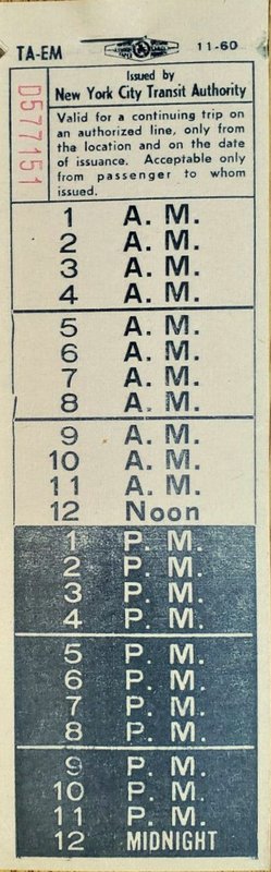 Not only were the large format transfers dated, but were issued in AM or PM; so no matter what, an inter-division transfer was only good for at most, 12 hours.