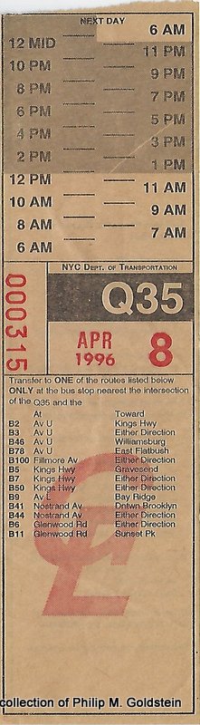 | Avenue B Line - south or north (pink) date code: 22 AM/PM tab Globe Ticket Co. |