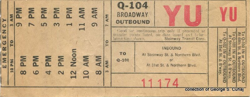 North (green) hourly punch, detachable PM couponn Surface Transportation Corp of NY (receivership, Lester T. Doyle trustee) (Smith Patent copy) |