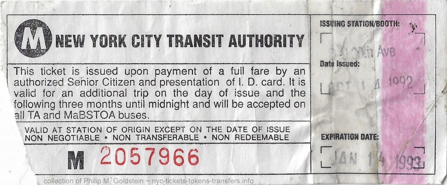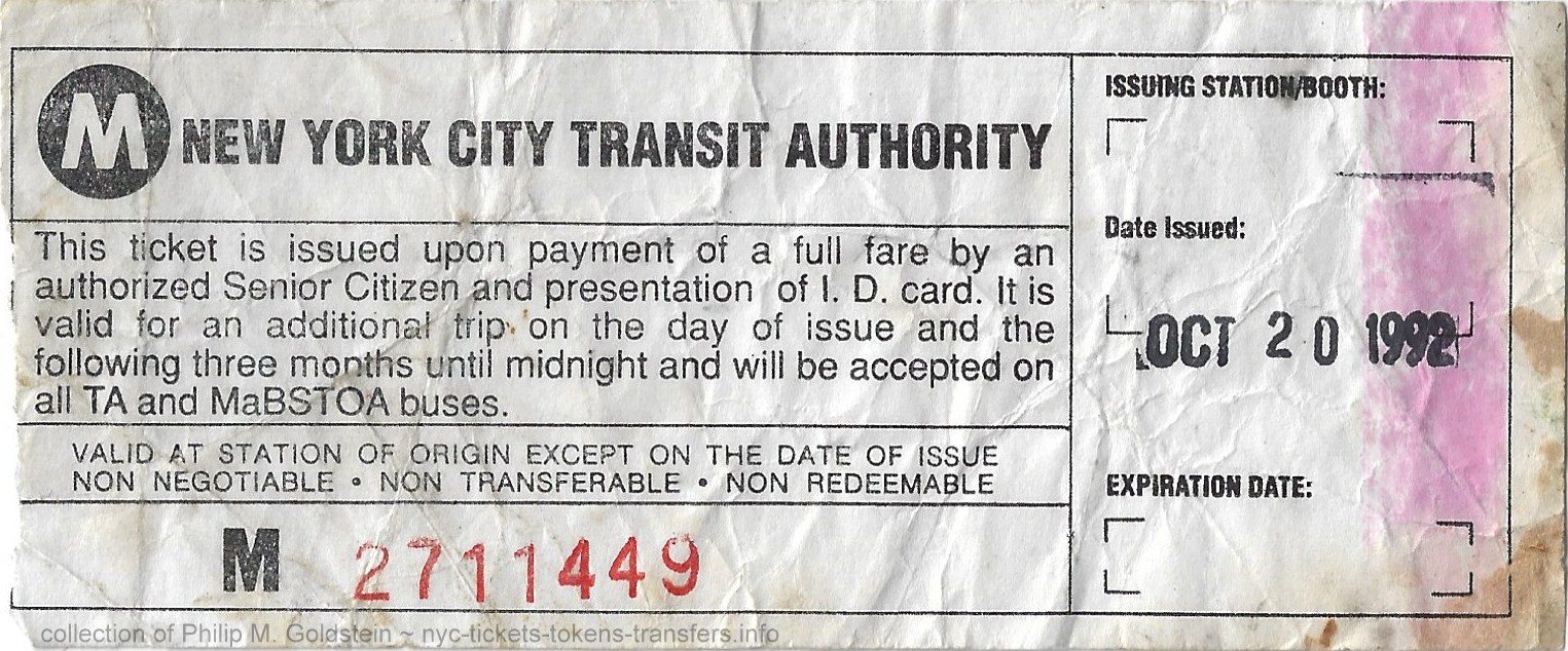 Fare Senior Citizen Tickets not frequently encountered.
