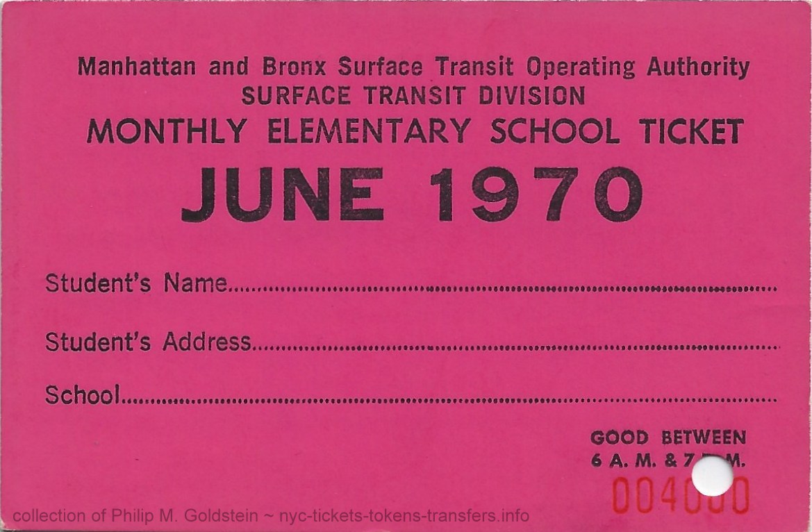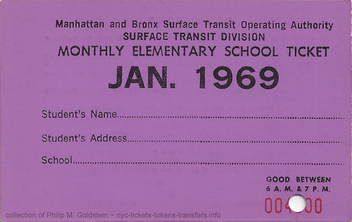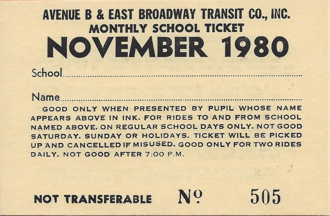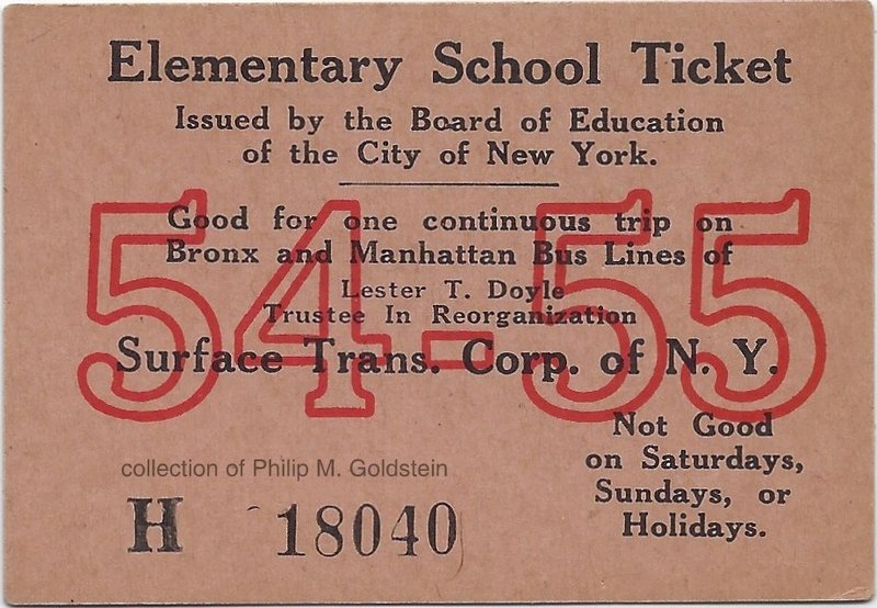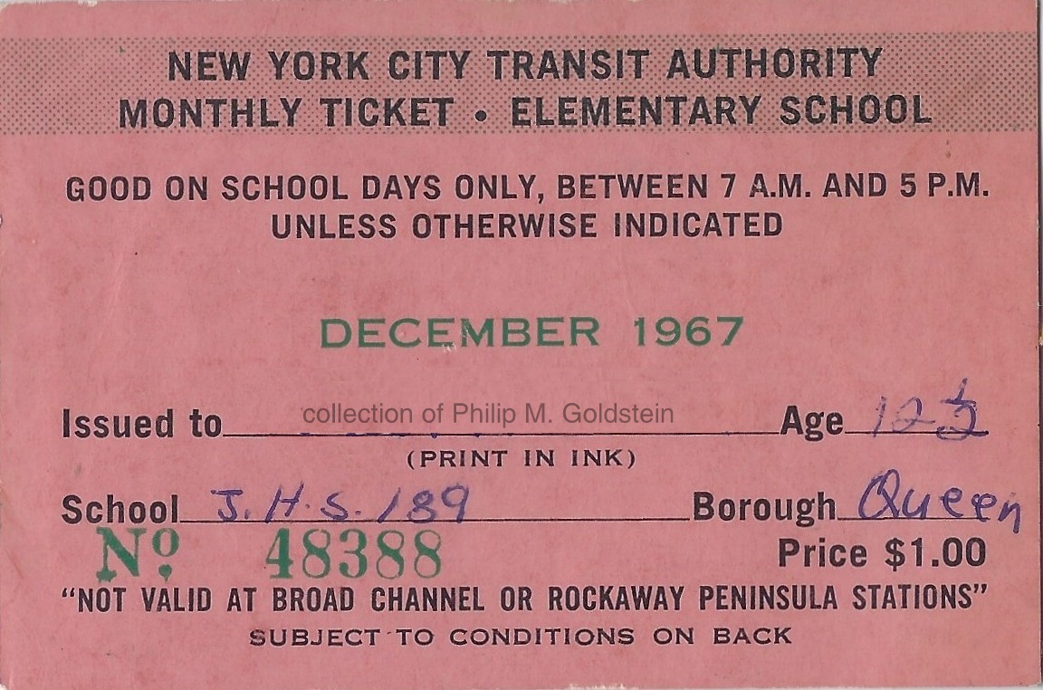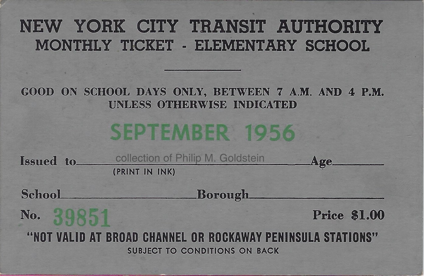 My first experience with a "bus pass" was in Junior High School. My elementary schools, PS 238 (Kindergarten through first half of Fifth Grade) less than half a mile north straight up East 8th Street from my home on Avenue S. Then PS 215 (second half of Fifth Grade through Sixth Grade) which was only 1700 feet west from my home. Both were within quick walking distance.