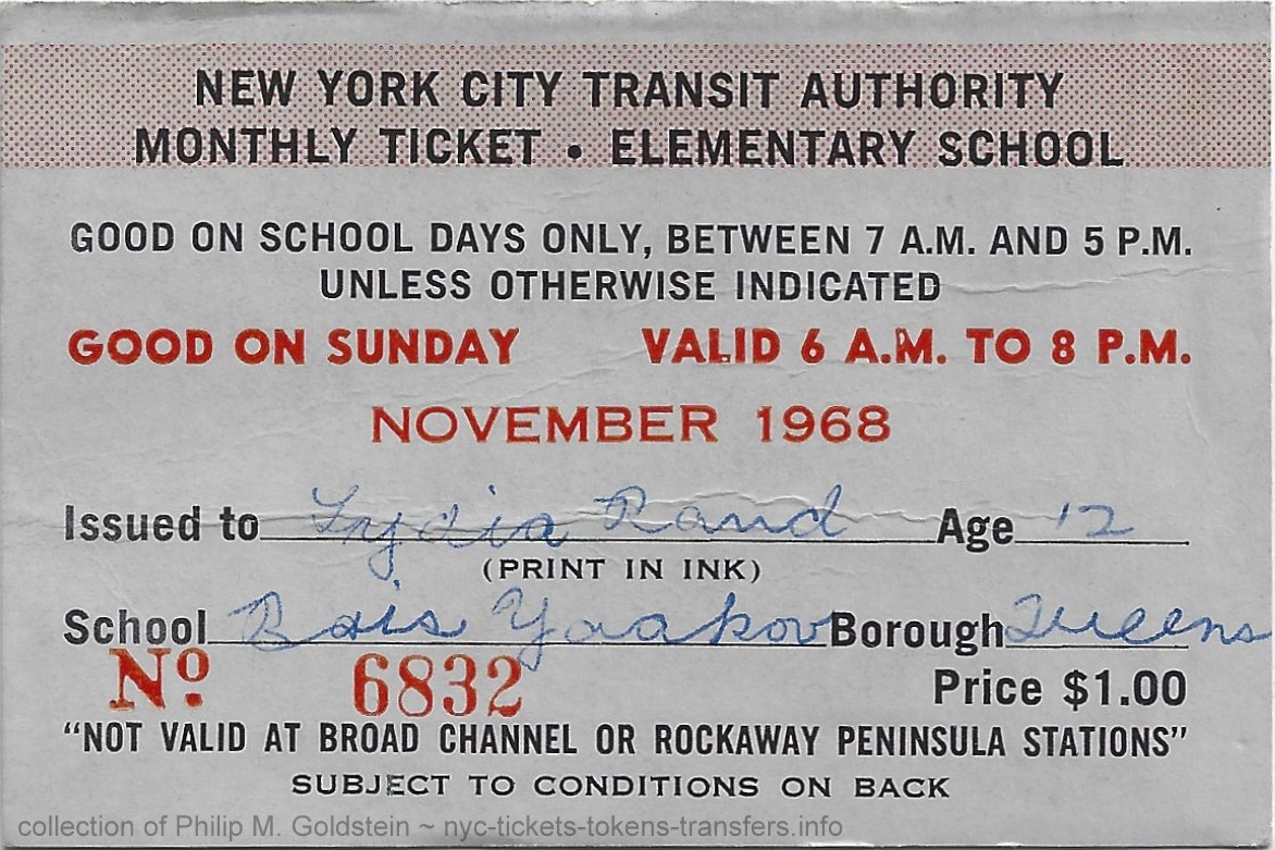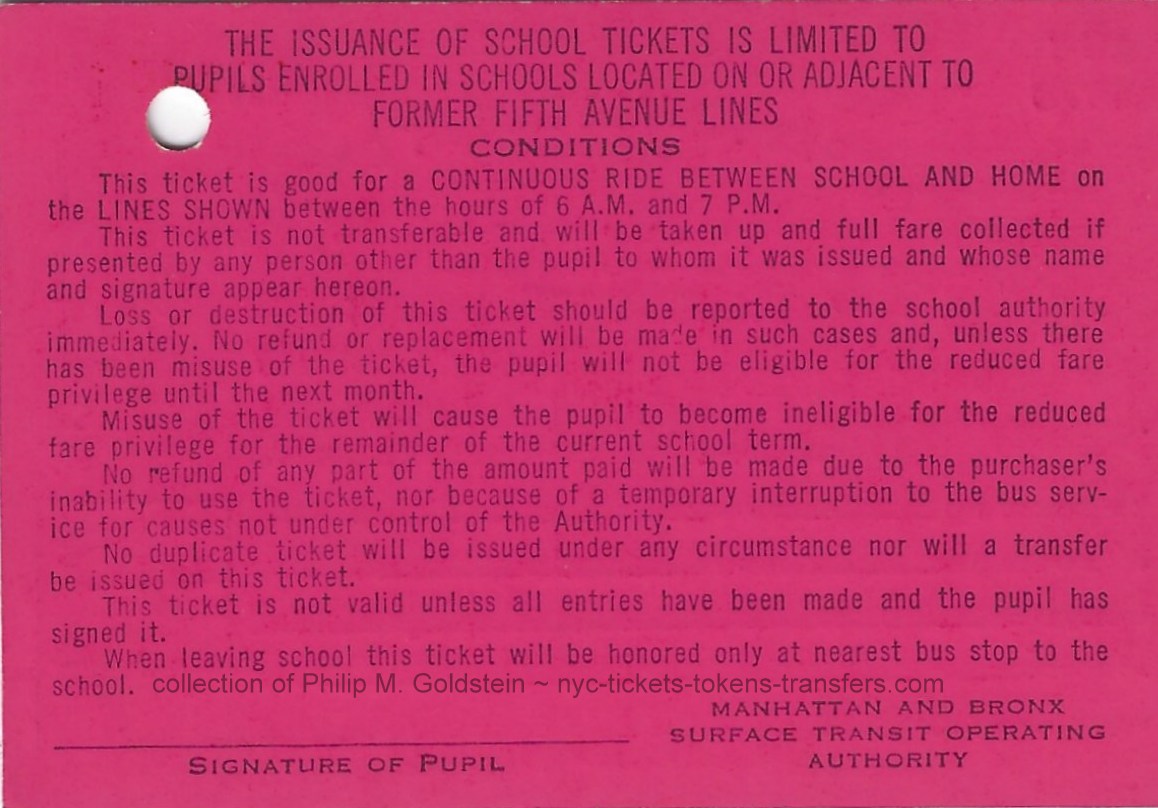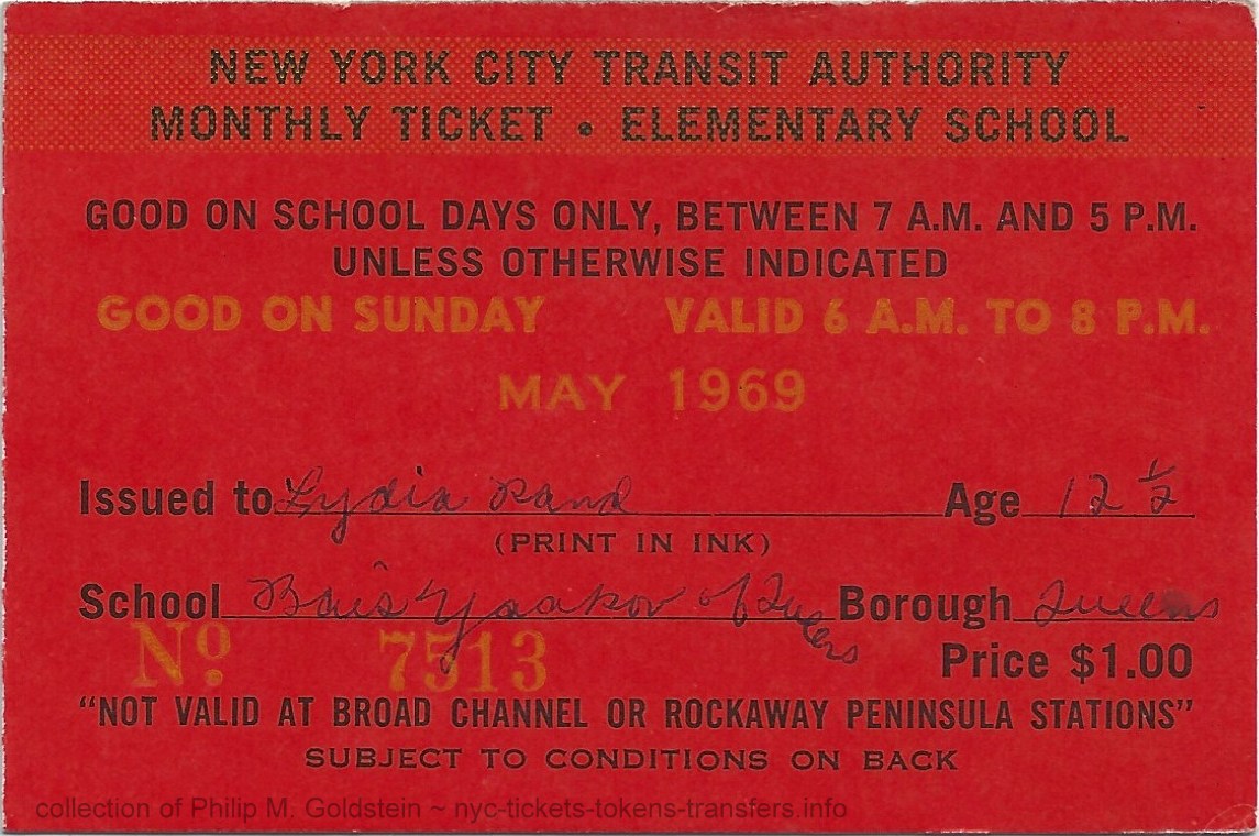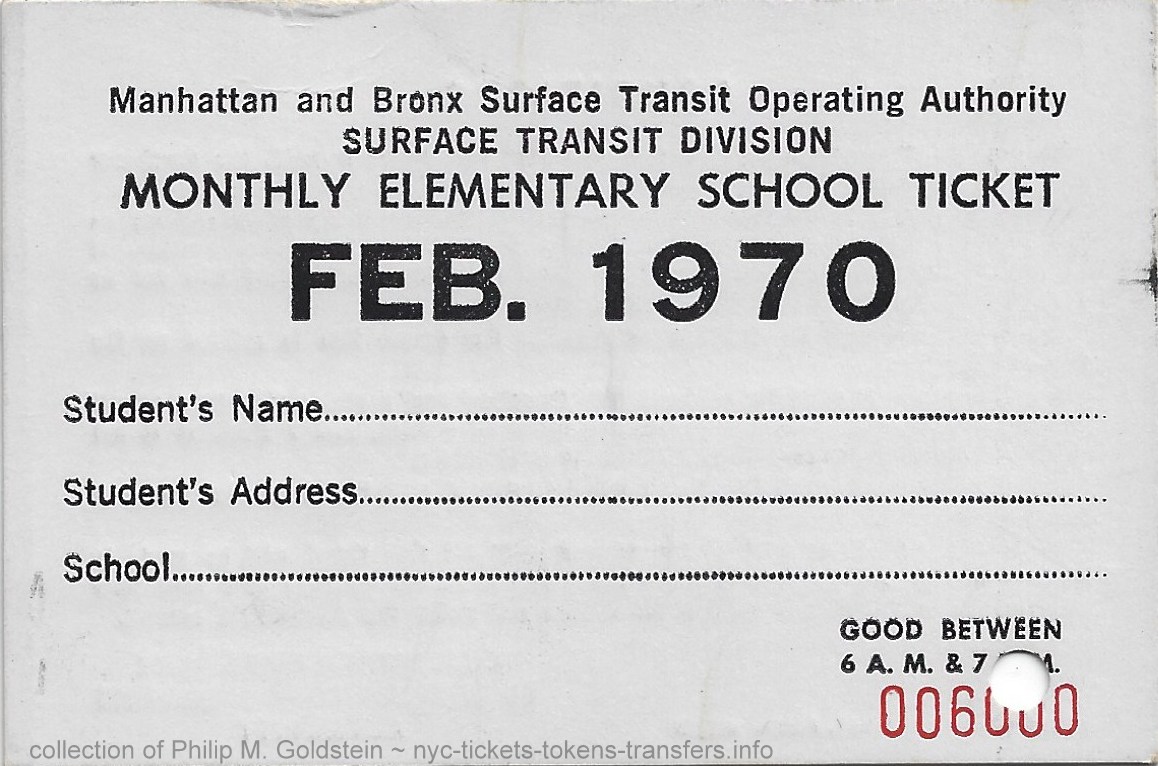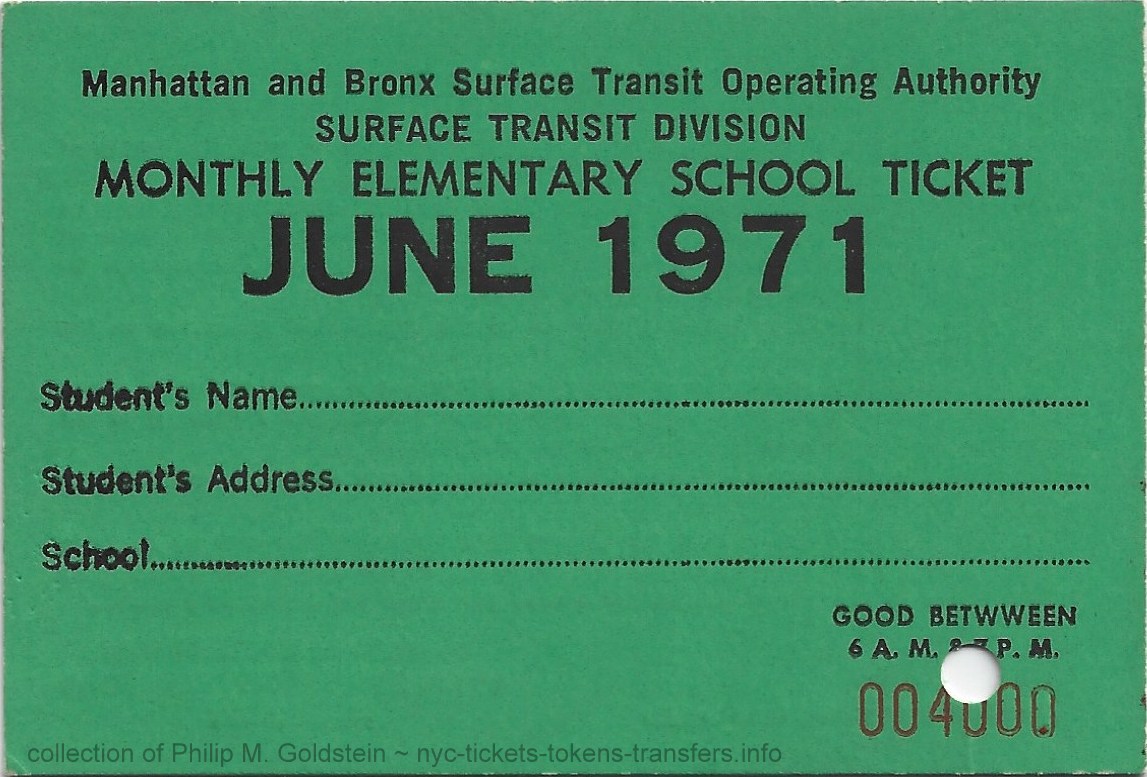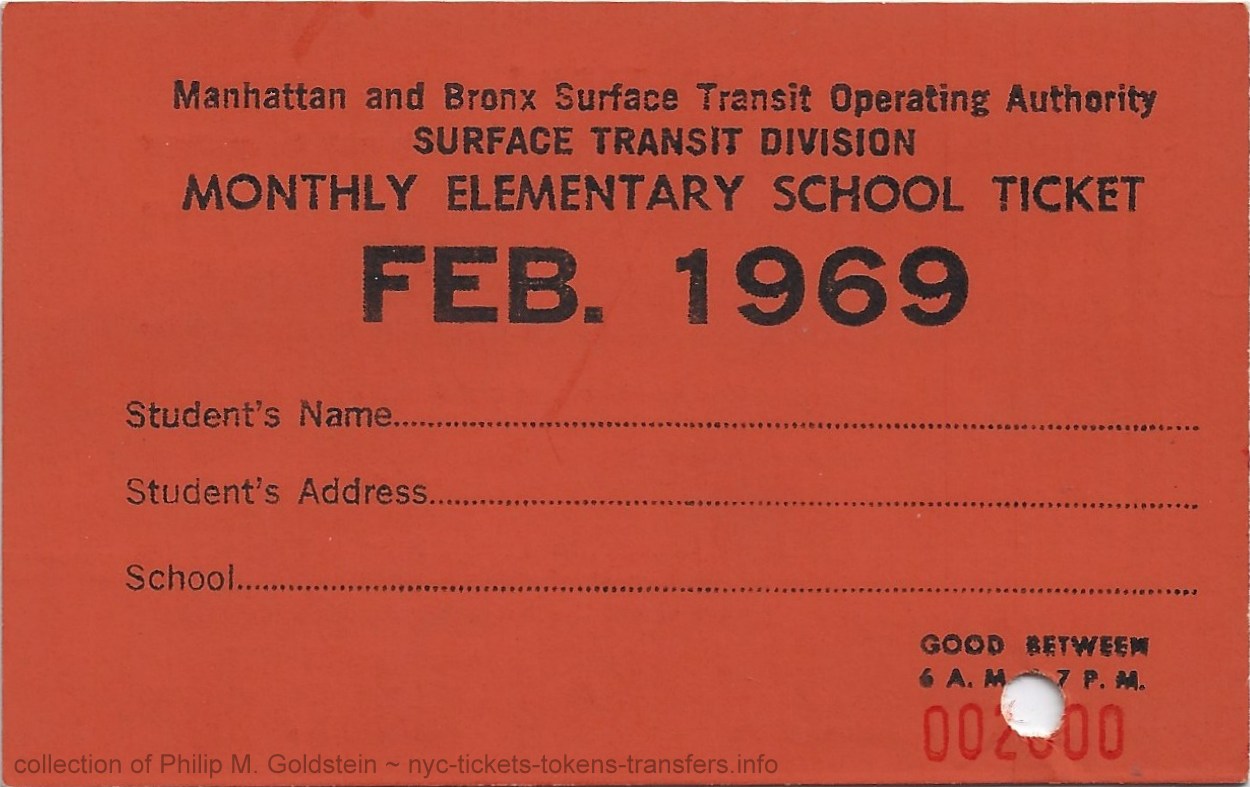 My first experience with a "bus pass" was in Junior High School. My elementary schools, PS 238 (Kindergarten through first half of Fifth Grade) less than half a mile north straight up East 8th Street from my home on Avenue S. Then PS 215 (second half of Fifth Grade through Sixth Grade) which was only 1700 feet west from my home. Both were within quick walking distance.