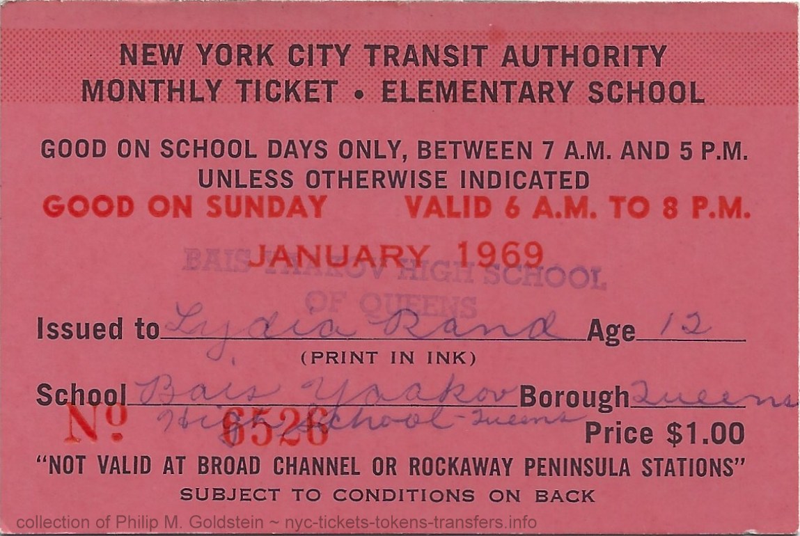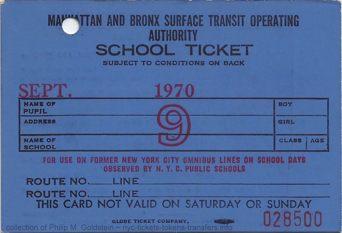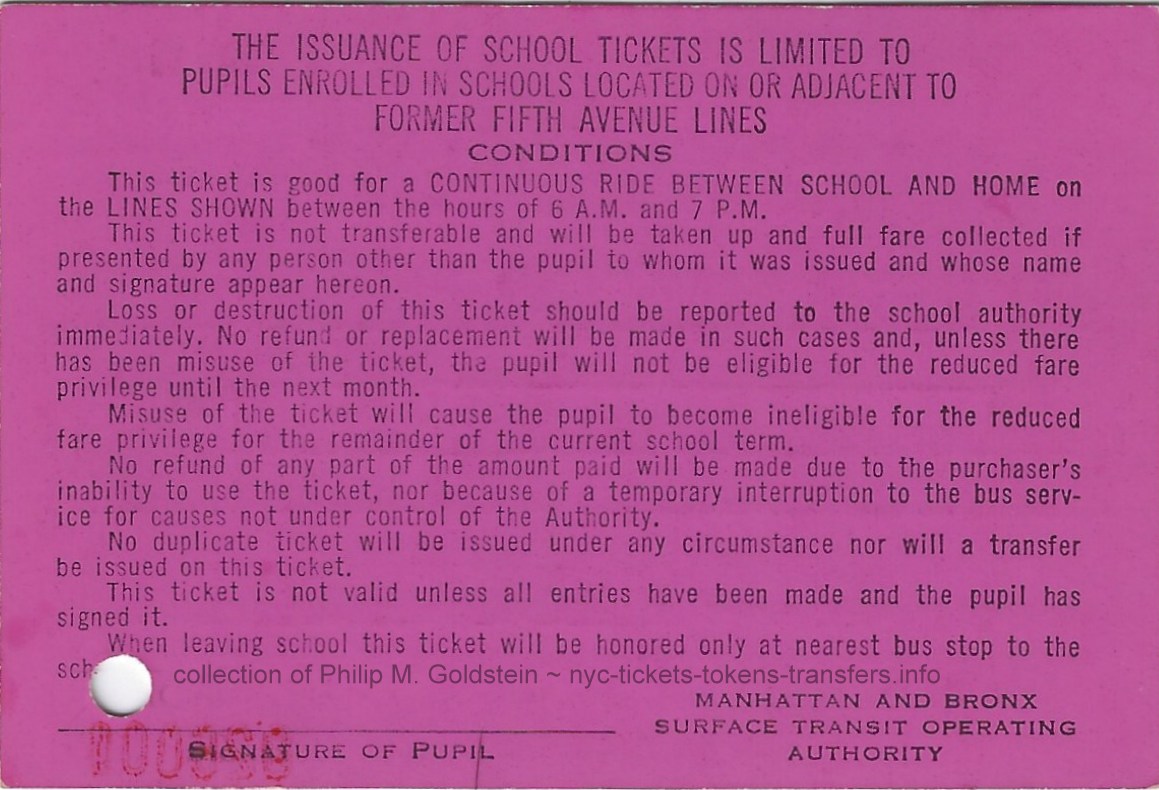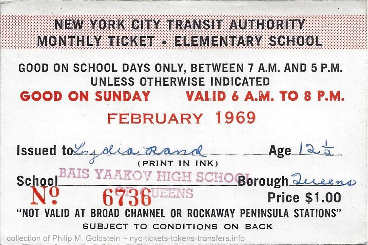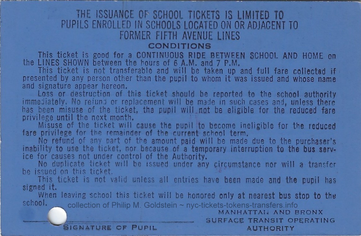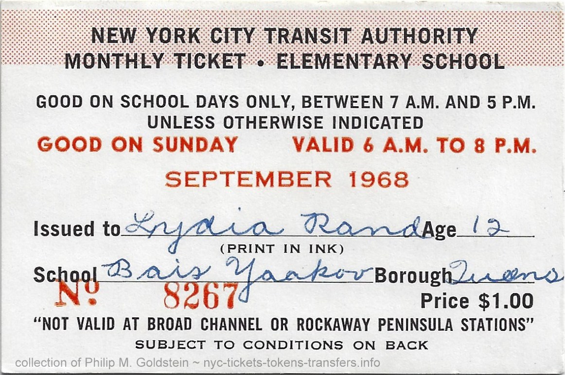 My first experience with a "bus pass" was in Junior High School. My elementary schools, PS 238 (Kindergarten through first half of Fifth Grade) less than half a mile north straight up East 8th Street from my home on Avenue S. Then PS 215 (second half of Fifth Grade through Sixth Grade) which was only 1700 feet west from my home. Both were within quick walking distance.