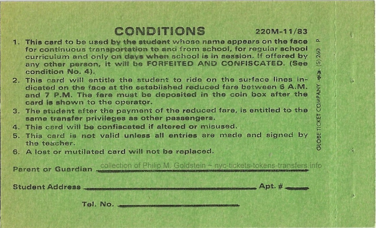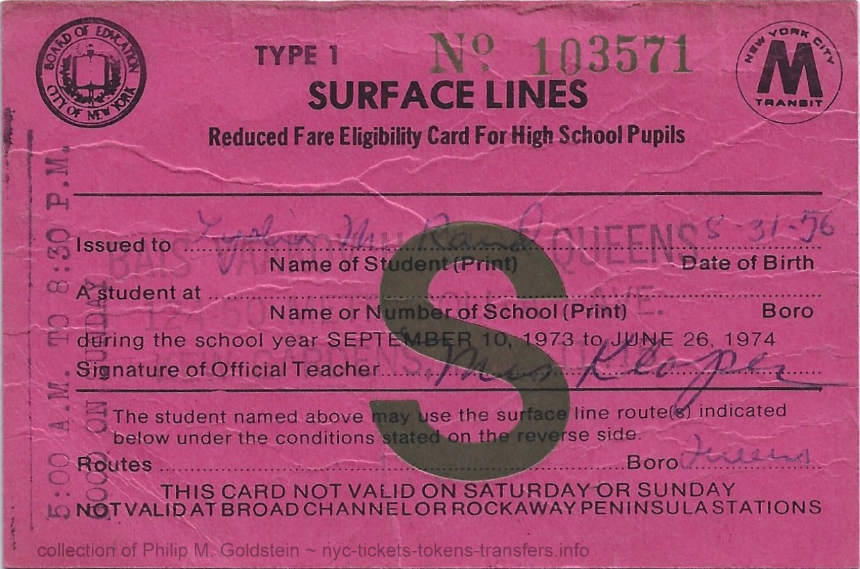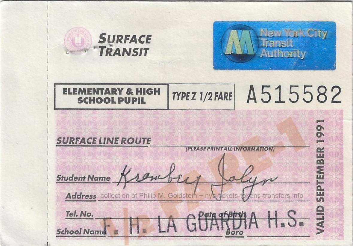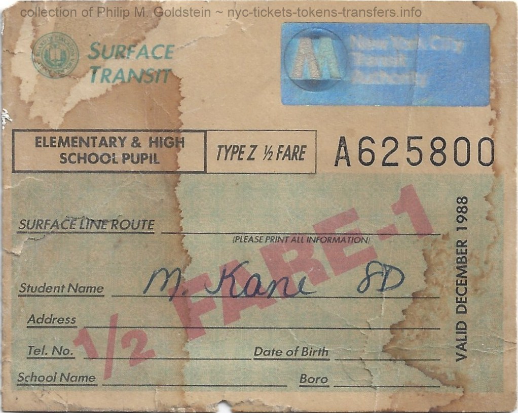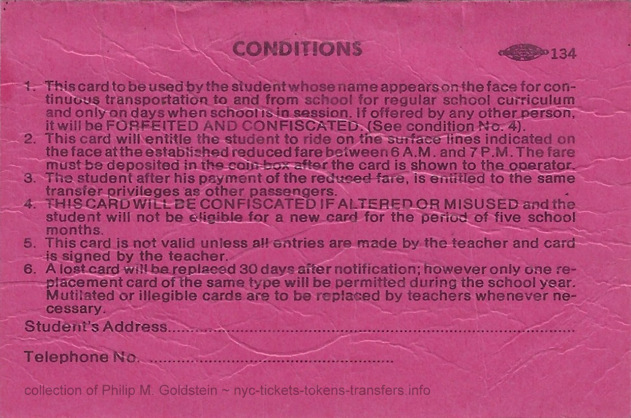 I was one of the lucky ones, if you would consider my childhood "lucky". I was eligible for a free pass, and it was good on both rapid transit and surface lines. Some kids were not as "lucky" - as theirs were only good for either the bus or the subway and then only still at a reduced fare. Even if you have a combination pass, you still had to pay.