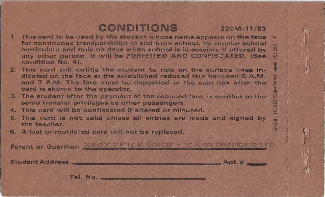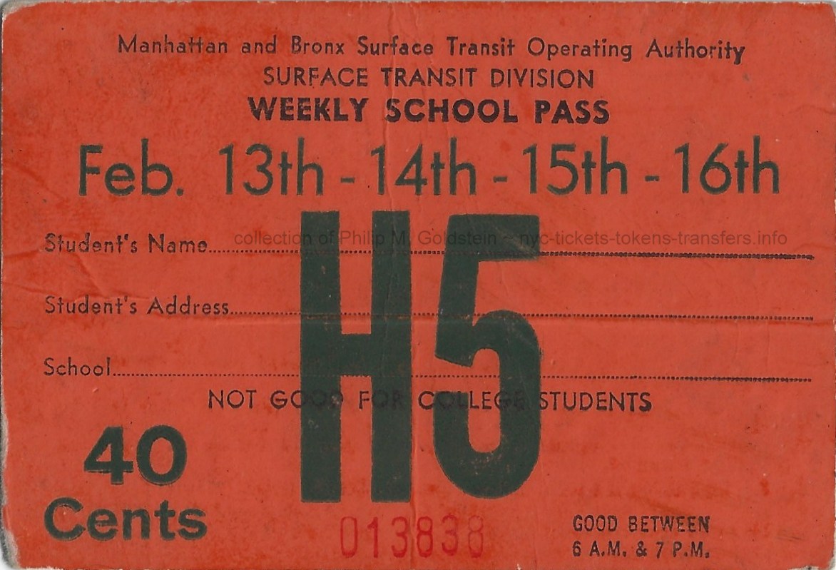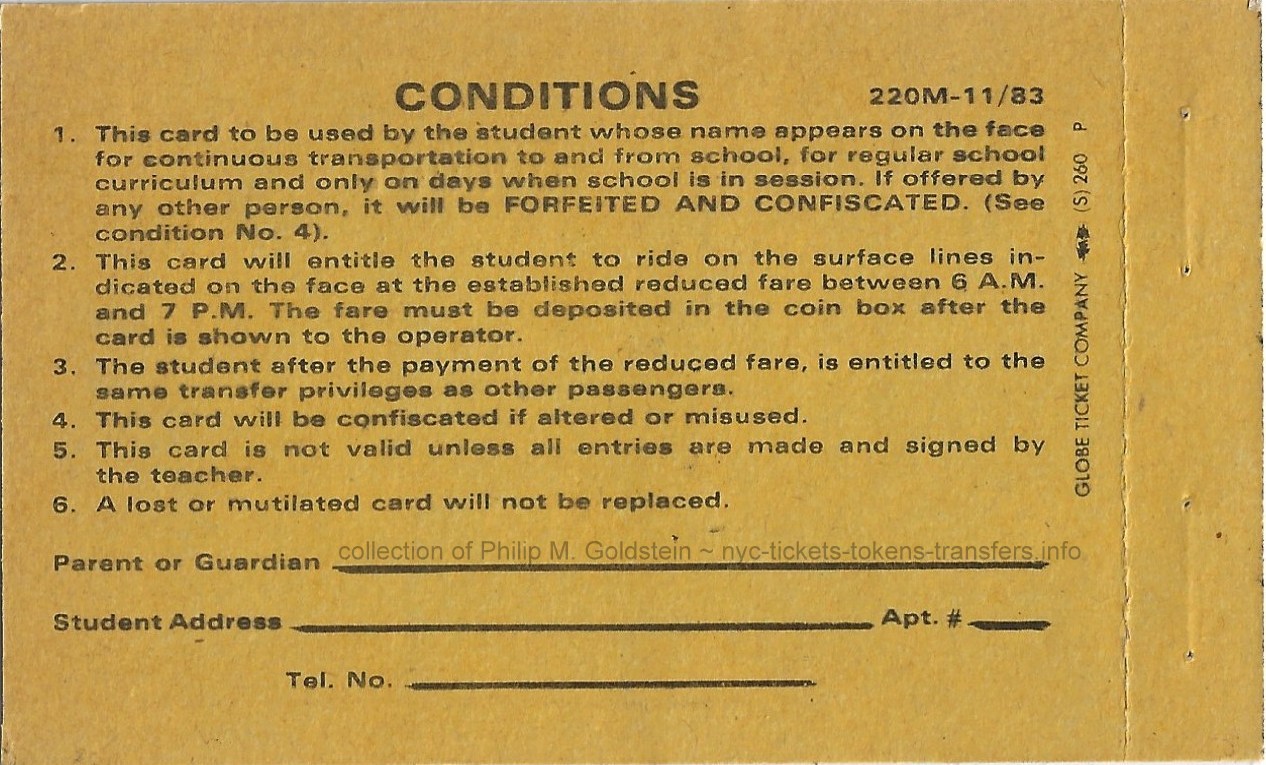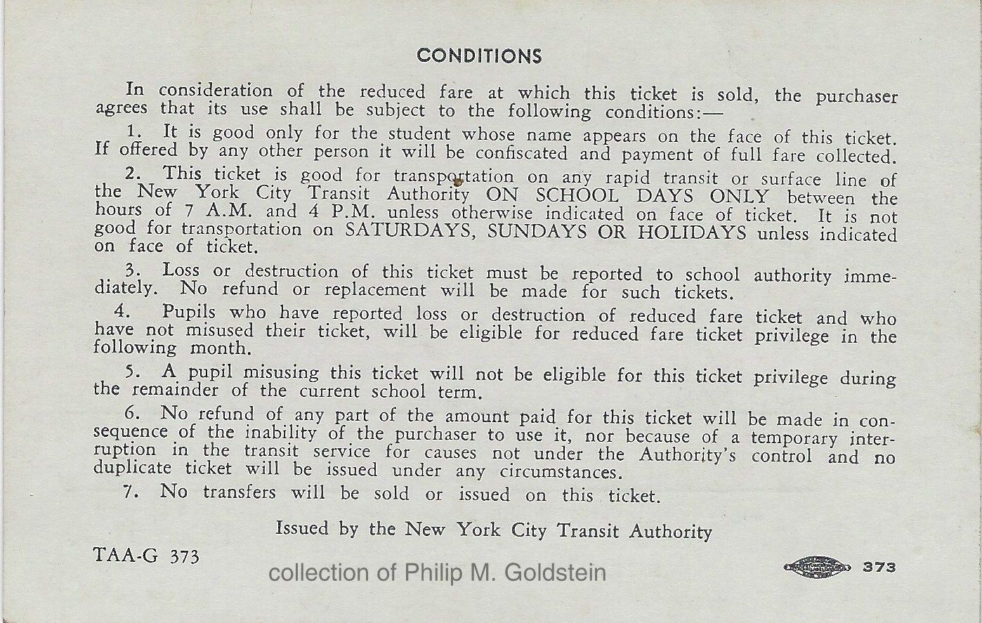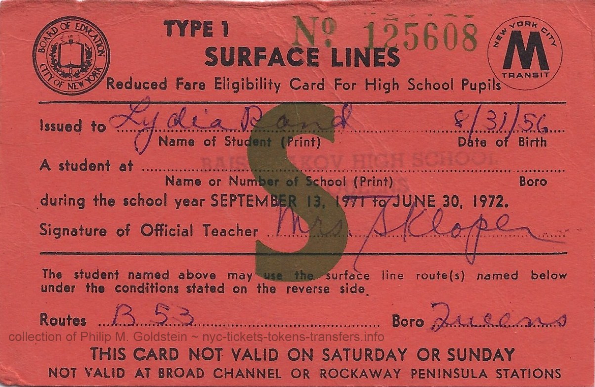 I was one of the lucky ones, if you would consider my childhood "lucky". I was eligible for a free pass, and it was good on both rapid transit and surface lines. Some kids were not as "lucky" - as theirs were only good for either the bus or the subway and then only still at a reduced fare. Even if you have a combination pass, you still had to pay.