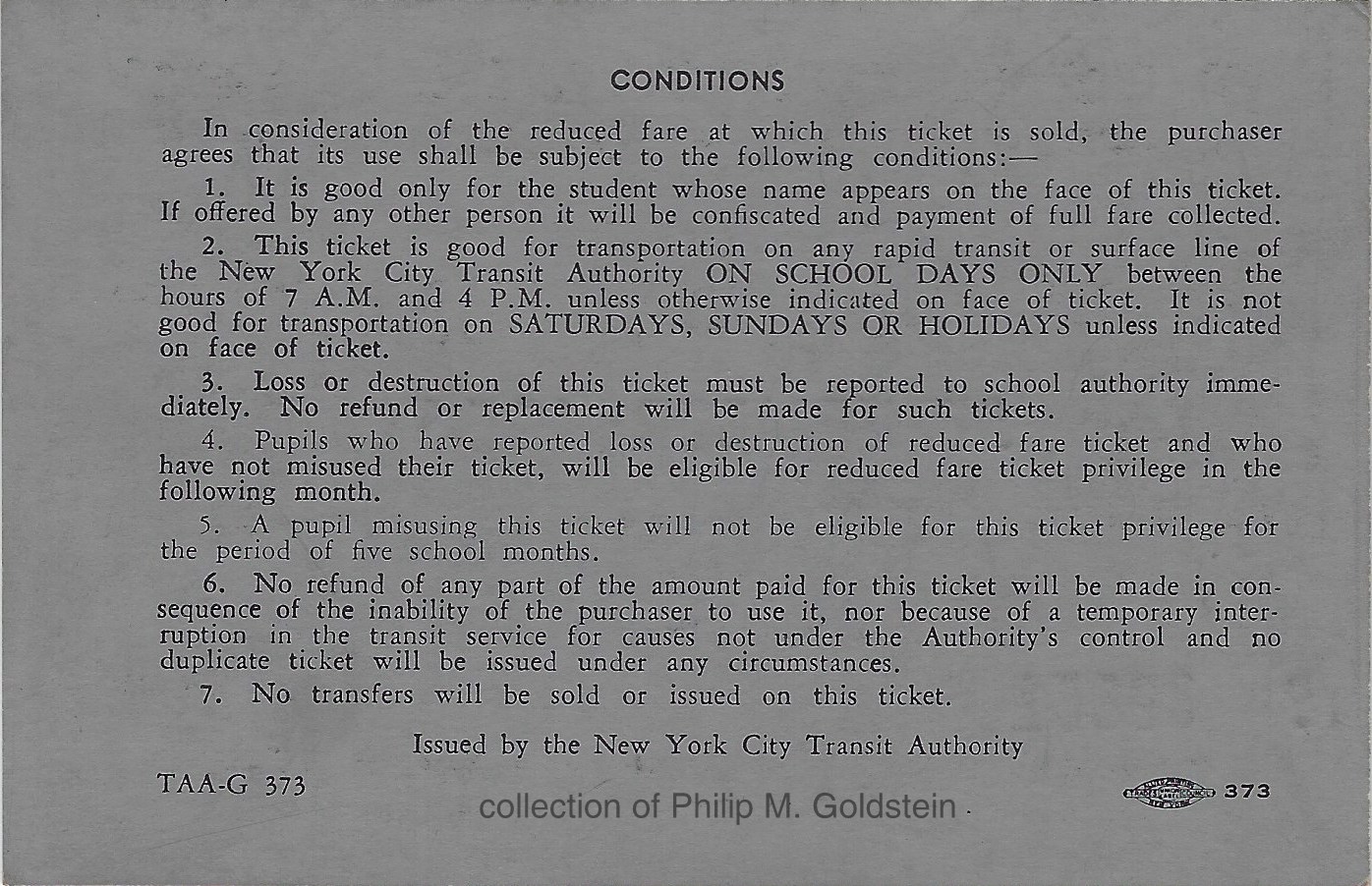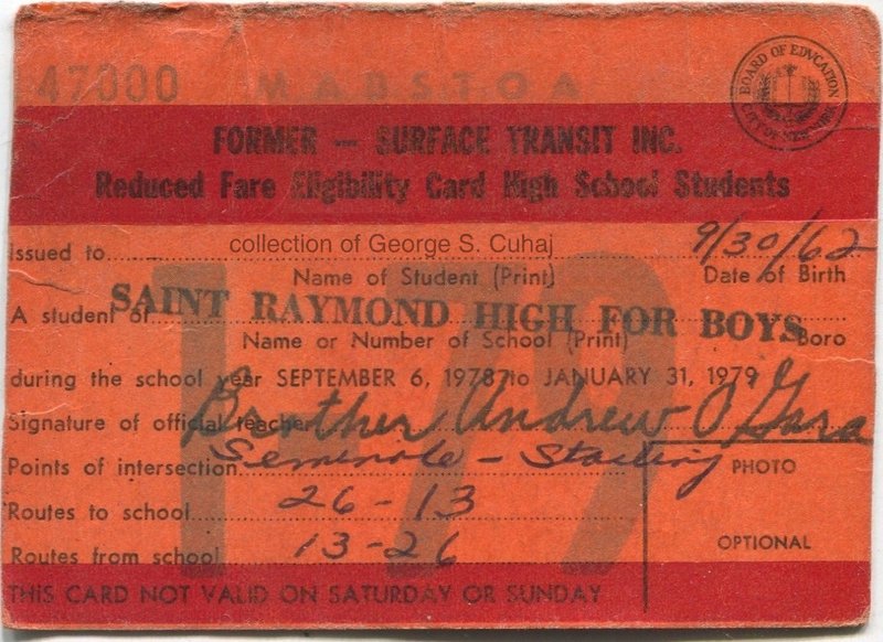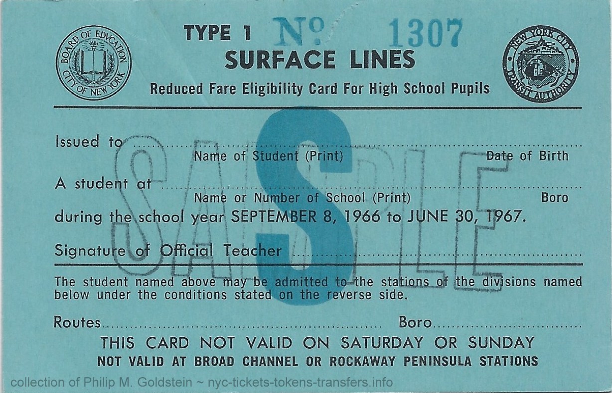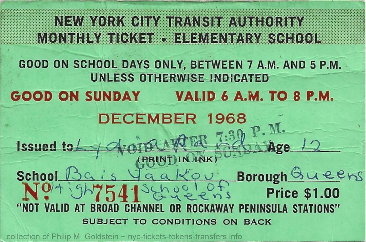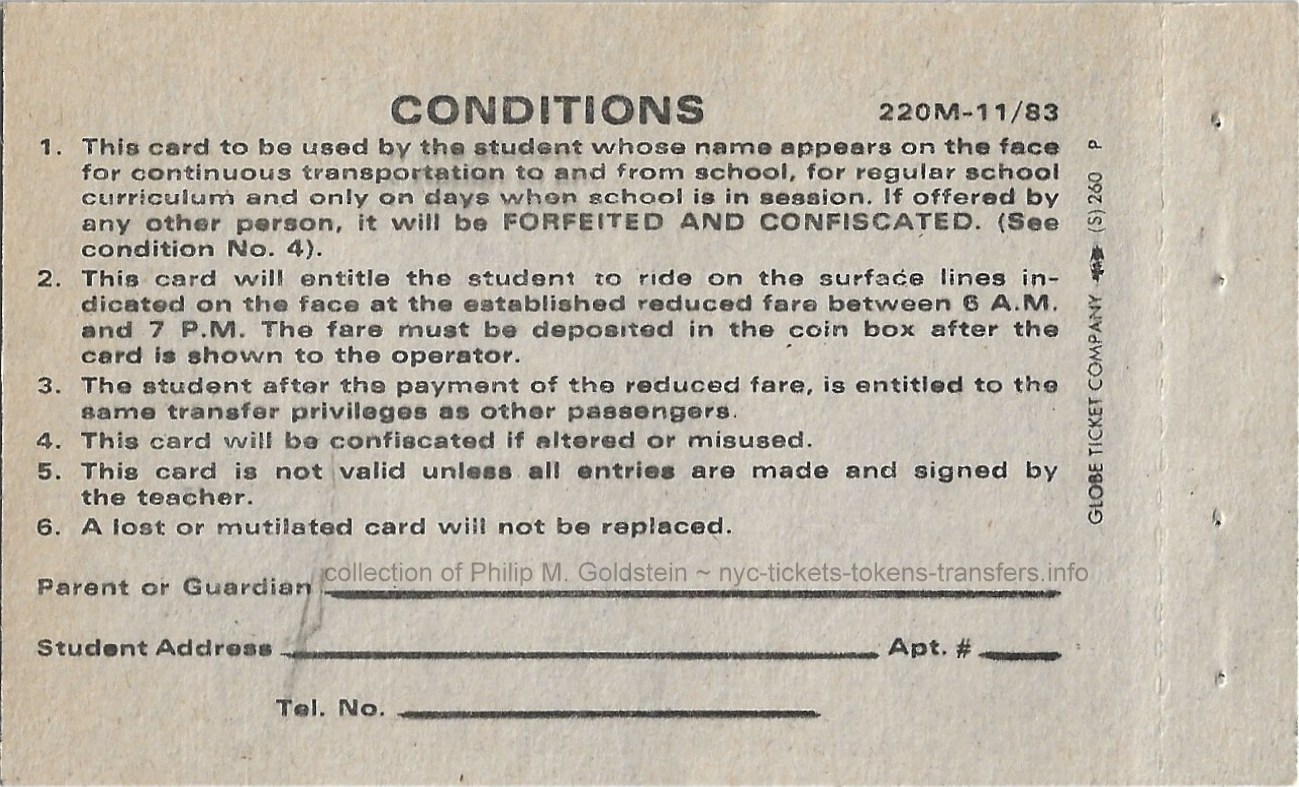 I was one of the lucky ones, if you would consider my childhood "lucky". I was eligible for a free pass, and it was good on both rapid transit and surface lines. Some kids were not as "lucky" - as theirs were only good for either the bus or the subway and then only still at a reduced fare. Even if you have a combination pass, you still had to pay.