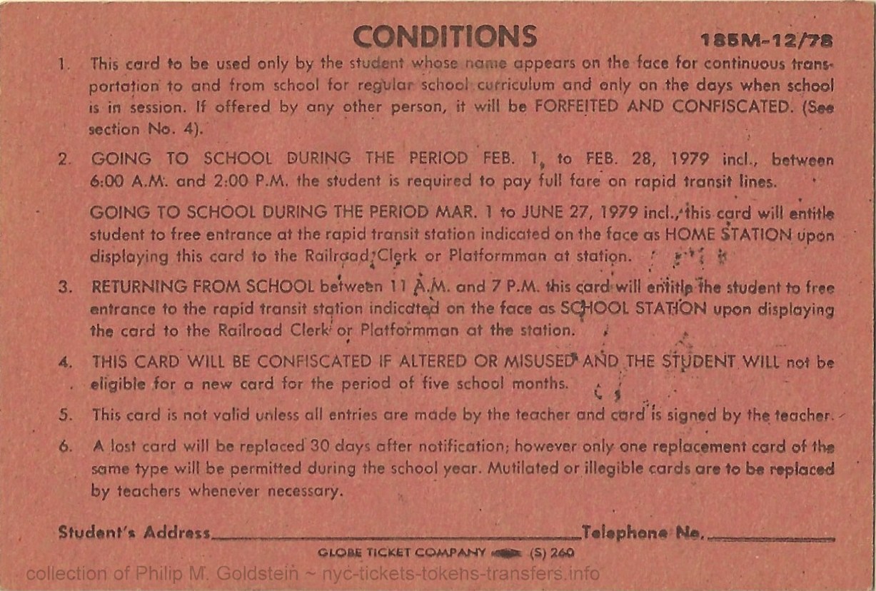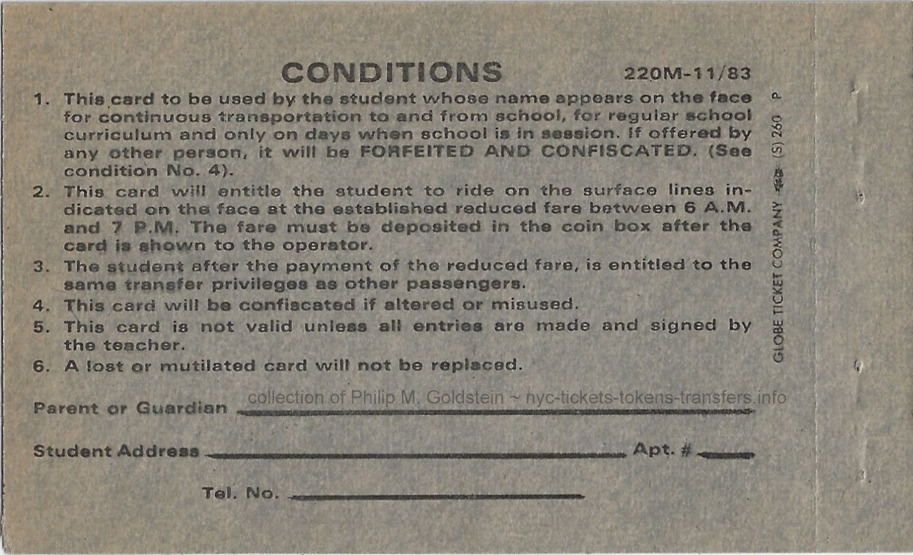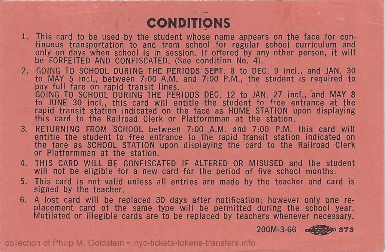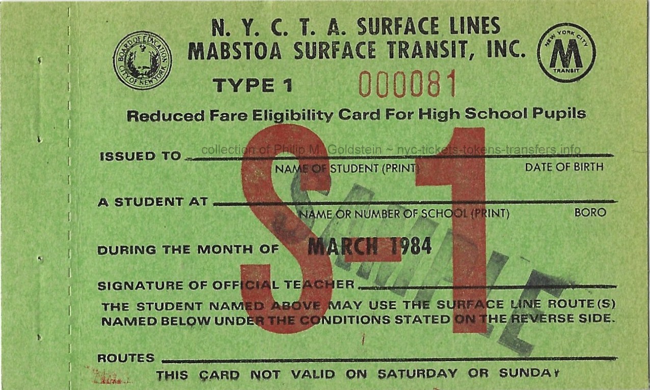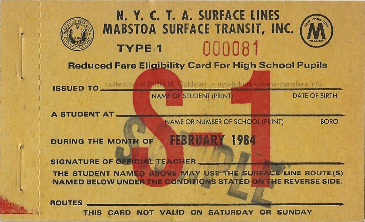 I was one of the lucky ones, if you would consider my childhood "lucky". I was eligible for a free pass, and it was good on both rapid transit and surface lines. Some kids were not as "lucky" - as theirs were only good for either the bus or the subway and then only still at a reduced fare. Even if you have a combination pass, you still had to pay.