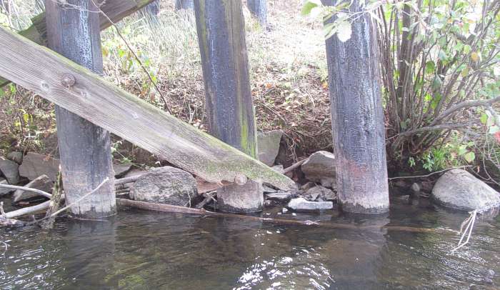 Last Autumn, I took a canoe ride under the trestle. There's still some floating stumps that have nestled up here for a long time. Also, not shown is a 4 inch tree cross-wise floating across the center of the channel in 2024, blocking it to canoe traffic. I had to pull a few branches away from the very south side to slide the canoe over the blockage. |