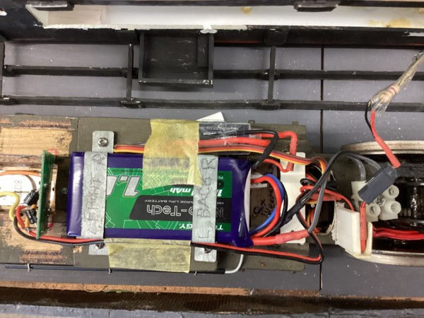 The photo attached shows one such LiPo battery being pushed up inside the BTR Shay firebox/boiler.