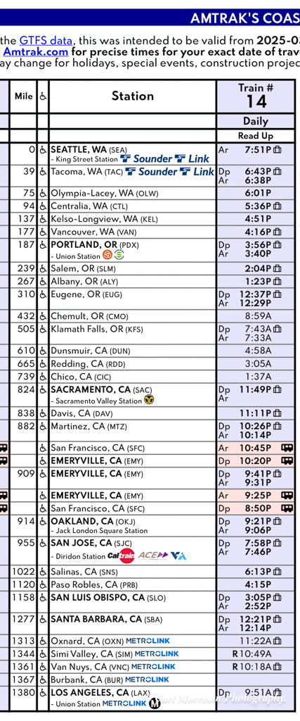 San Luis Obispo is a crew change stop, longer than normal, and Don used