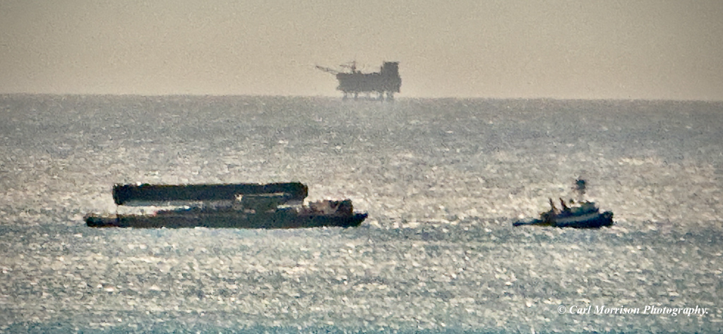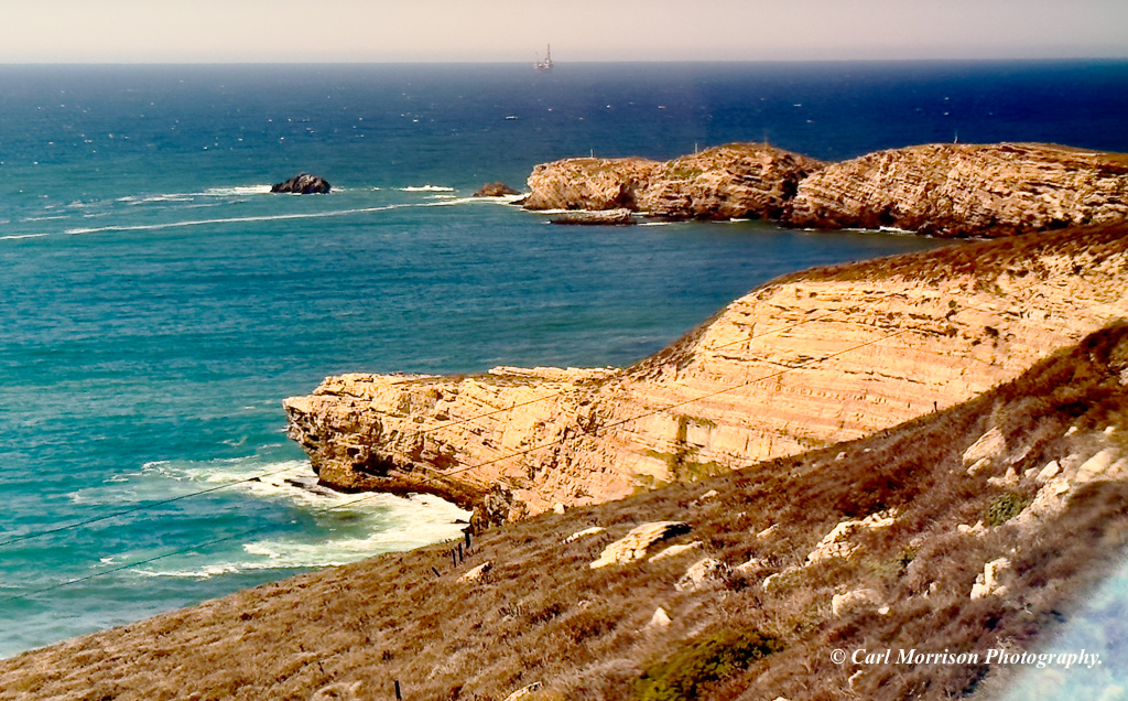 Vandenberg AFB. An oil drilling platform beyond in the Santa