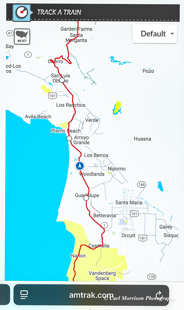 Left, Amtrak.com's app for locating all Amtrak trains is fun to follow