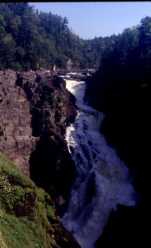 I also stopped at Montmorency Falls at the boundary between the borough of Beauport and Boischatel, about 7.5 miles from the heart of old Quebec City. The area surrounding the falls is protected within the Montmorency Falls Park and the falls are at the mouth of the Montmorency River where it drops over the cliff shore into the Saint Lawrence River, opposite the western end of the Île d'Orleans. The waterfalls are 272 feet tall, 99 feet higher than Niagara Falls. There was a charge for everything including the cable car to the canyon rim. I liked Canyon Sainte Anne so much better, although Montmorency Falls was featured in the Sunday River video "CN 6060 Steel In The Sky", so it was worth a visit. I drove the rest of the way to Quebec City where I checked back in at the Quality Hotel and filled the car before returning it.