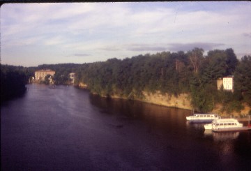 We left Montreal and made our way across the St. Lawrence River towards the American bborder. US Customs were not set up to handle the five buses as well as the other regular bus traffic. We were sixth in line and waited twenty-five minutes before moving up to be next in line, followed by another ten minutes before our turn. We had to take off any hand-carried luggage, place it on a table and I led the way inside the building to the Customs officials. I was asked just three questions before being sent to another counter to turn in my declaration form then I was sent to a waiting area until the bus was checked and we were allowed to reboard. Everyone returned except for one who had to come out, get his bag and was never seen again. An hour and twenty minutes later, we were told to go on without him.