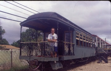 The top one read "Welcome Chris Guenzler" in the form of a banner and the one under stated "Congratulations 50 States 50 Train Rides." I was extremely proud and deeply touched by all this and was photographed by the steam engine by various people. Larry then introduced me to the other members of the society who came out for this event and they congratulated me on what I was about to accomplish. I visited their gift shop and bought several souvenirs then Will Hoover of the Honolulu Advertiser newspaper arrived and we repeated the pictures then toured the grounds with me as the guide.