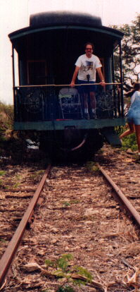 Hawaiian Railway Society First Visit, the Wind and the Zoo 11/11/2000I woke up early and drove to a swap meet at Aloha Stadium to purchase a hat of the University of Hawaii Rainbow Warriors for Amtrak Conductor Christy Pacheco as none of the shops in Waikiki had one. I paid fifty cents to get in and after walking around, found a tent where the woman went through fourteen boxes in search of that hat and was successful and I tipped her well. On my way back to the car, I found a booth selling ten T-shirts for twenty dollars which took care of me and gifts for several other people. Back on Interstate H1, I drove to Interstate H2 to Wahiawa and back to add that route to my driving miles. Back on Interstate H1, I took Highway 76 down to Ewa and Renton Road to its end, where the Hawaiian Railway is located and met Larry Howard in person and several other members who were about to go out on a track gang. I was invited to ride along, but for the first time, declined a train ride because tomorrow was set to be the big day.