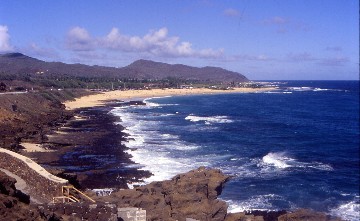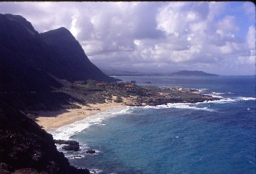 On my southern return, I made a side trip up the Waianae Valley just to see what was up there then retraced my route back to Interstate H1 and exited at Highway 750 crossing the saddle of the island with the pineapple fields owned by Dole. I passed through the Scofield Barracks before taking Highway 830 down to the North Shore to Highway 930, which I took west to the end of the road to the north part of Kaneana State Beach, where I laid out on an empty north shore beach. Returning east, I made my way to Highway 83 which would take me around to the east side of Oahu.