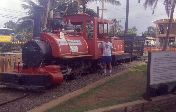 Shortly after returning from the 2000 North American Rail Pass 33-day expendition, I checked my Alaska Airline miles which I earn riding Amtrak West and with plenty, I made the decision to go to Hawaii, which was be the 50th state in which I would ride a train. I called the Partner Desk at Alaska Airlines who set me up on a round trip flight going via San Francisco and returning on a direct flight to LAX, then called the Hawaiian Railway in Ewa Beach, Oahu to inform them of my upcoming visit and my desire to ride their train. I suggested that a press release might be in order due to the nature of my visit and was I doing something that no one else had done?