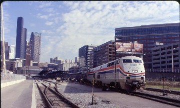 Pre-Customs inspection took longer as the agents were late but were expeditious in performance of their duties so all passengers could board. I visited the Bistro car for dinner and listened to tunes until departure time, which was on schedule, but we were delayed at the Fraser River draw bridge. First, a sightseeing paddle boat passed, followed fifteen minutes later by a barge with tug boats working hard on both ends. At Blaine, Customs boarded and I was asked just one question. The filme was one I always wanted to see but never did until now - "101 Dalmatians". We arrived in Seattle a mere three minutes late.