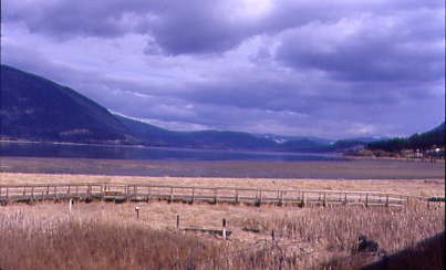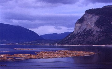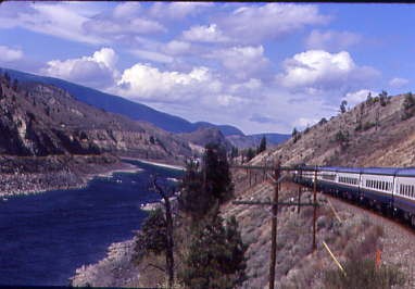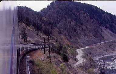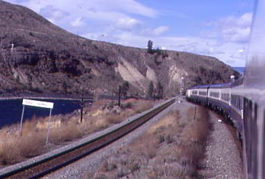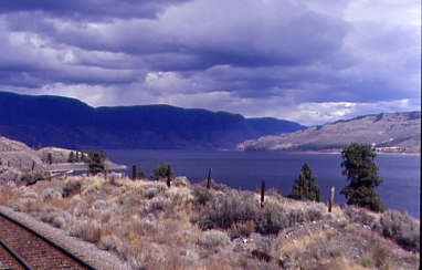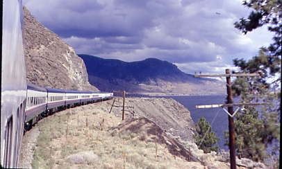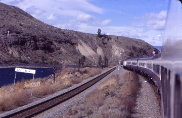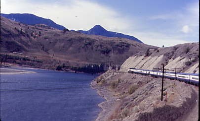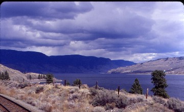 The Canadian National ran along the north shore and Canadian Pacific ran along the south shore of Kamloops Lake.