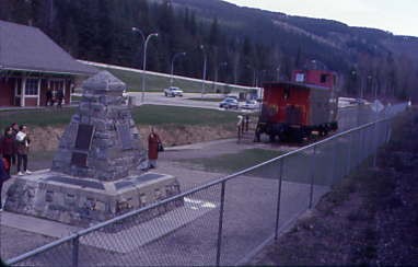 Craigellachie, where the Revelstoke Railway Museum has a satellite location commemorating the the driving of the last spike on the Canadian Pacific Railway on November 7, 1885. There is also a cairn and Canadian Pacific caboose 437336 1992, exx. Canadian Pacific 439512 1979, nee Canadian Pacific 437336 built by the railway in 1949.