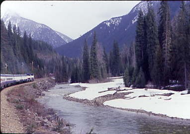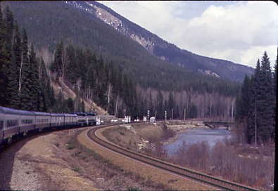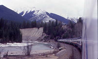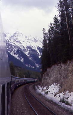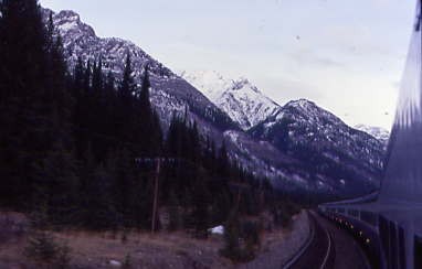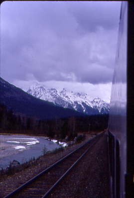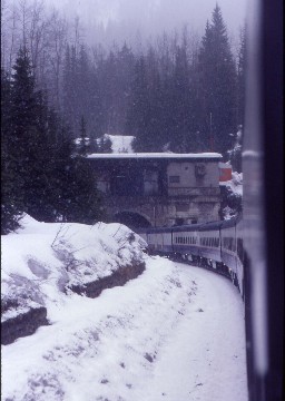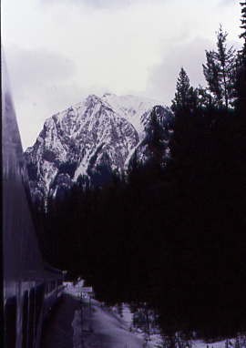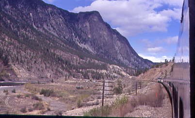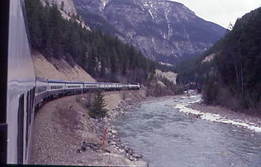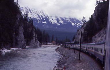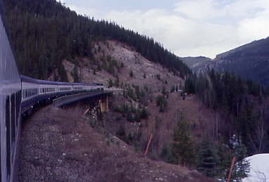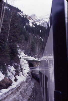 Well, I may not be on the Canadian riding by this location, but I would take this train any day of the year. We entered Kicking Horse River Canyon, crossed the river seven times in the narrow confines and passed through five tunnels and rock detector fences along its sheer cliffs.