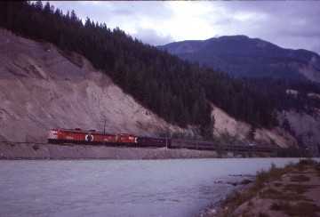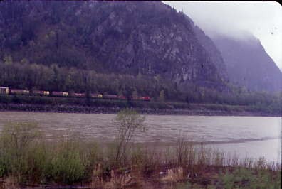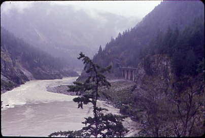 The Canadian National crosses the Fraser River at the junction of the Thompson River and we would now follow the river into the Thompson River Canyon.
