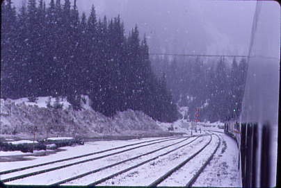 Trans Canada Highway 1 passing through a snowshed. We ran up through the beautiful Albert Canyon and the line became single track at Illecillewaet as we passed through the Laurie Tunnels and snowsheds.