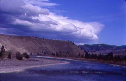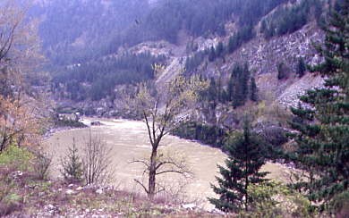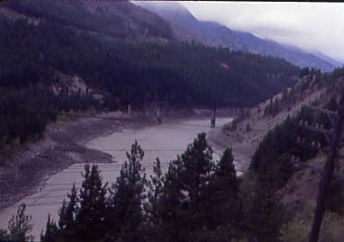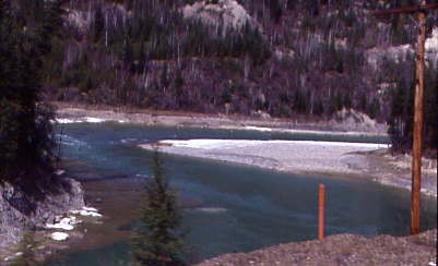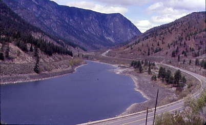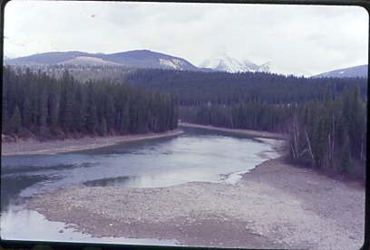 We followed Beavermouth River downgrade through Griffith and Rogers to Beavermouth and the junction with the Columbia River again, as the river's course took it far to the north and was now decscending from the southeast. The river has Mica Dam downstream and since the spring runoff had noty et occurred, the river level was down.