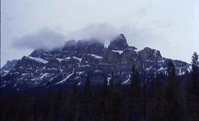 Castle Mountain at 9,075 feet, is located within Banff National Park in the Canadian Rockies, approximately halfway between Banff and Lake Louise. It is the easternmost mountain of the Main Ranges in the Bow Valley and sits astride the Castle Mountain Fault which has thrust older sedimentary and metamorphic rocks forming the upper part of the mountain over the younger rocks forming its base. The mountain's castellated, or castle-like, appearance is a result of erosive processes acting at different rates on the peak's alternating layers of softer shale and harder limestone, dolomite and quartzite.