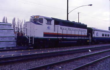 Rocky Mountaineer Railtours GP40-2LW 8013, ex. Alstom 9621, nee Canadian National 9621, built by Electro-Motive Division in 1975, was the sole power for our train. Our route out of the city was the same as VIA Rail's Canadian, although the large big difference, and selling point, is the all-daylight operation which enables passengers to see all the scenery.