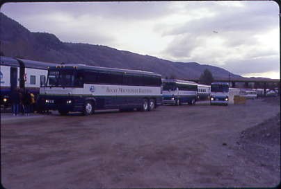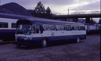 The night passed all too quickly and I was up and ready for a full day of train-riding on a new route that I had never ridden, which included that portion which I had seen when I was young during family vacations at Golden when both the eastbound and westbound Canadians passed the campground at the bottom of Kicking Horse River Canyon. This classic General Motors bus transported the passengers back to the train.