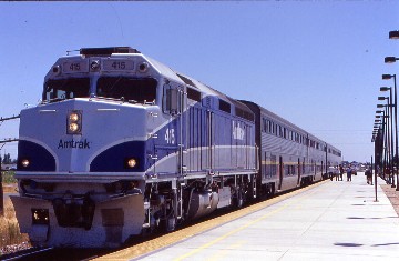 On July 5th, I was scanning Amtrak's Rail Sale page of their website and came across Train 701 for $10.80 to Sacramento and Train 704 for the same price back to Bakersfield. This was the new set of San Joaquin trains that provided the opportunity to travel up the San Joaquin Valley in the morning and down the valley to Bakersfield in the evening. However, there was no Thruway bus from points south of Los Angeles and the evening connection came only as far south as Santa Ana. The only way to do this trip was to either take the midnight bus to Bakersfield and wait for two hours, or to drive; I chose the latter, deciding to race the bus to Bakersfield.
