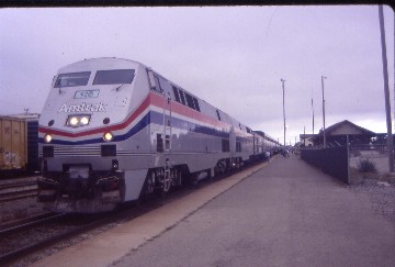 We then went into the siding at Albrae to wait for Capitol Corridor Train 534, which was not even scheduled to leave San Jose for another eight minutes when we came to a stop. Talk about a major dispatcher error, a thirty-minute delay. Every delay of this train has been caused by human error. The choice in Seattle of leaving the AOE to take apart a dead train on the only live track the Coast Starlight could use is ridiculous. We can forgive Seattle mechanical due to the lateness of our train not giving them enough time to work on those two "toasted" engines. Putting the extra engines on our train was a great idea. Still though, human error added to all of this which made me have to take a bus to get home to Santa Ana. We departed San Jose at 1:33 PM {10:07 AM}.
