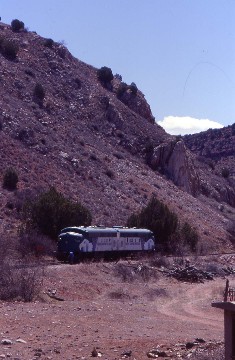 My VisitI was up early and drove Interstate 17 to Arizona Highway 260 at Camp Verde then stopped at Cottonwood for petrol and a MacDonald's breakfast. I turned onto Arizona Highway 89A which took me into Clarkdale right to the depot, an attractive building with excellent groomed grounds. Below the parking lot were passenger cars from the Wyoming and Colorado Railroad, which came here when former Alaska Railroad FP7As 1510 & 1510 arrived from that operation when it ended its 1995 excursion season in Wyoming.
