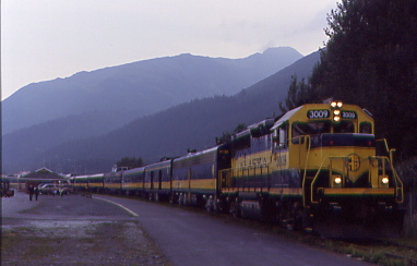 The train departed Seward on time at 6:00 PM for the trip back to Anchorage.