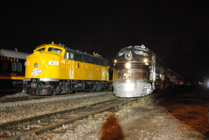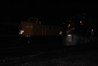 My first shot was Chicago, Burlington and Quincy E5A 9911A and Chicago and North Western F7A 411.