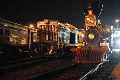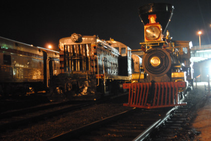 Central Pacific 4-4-0 63 "Leviathan" and Chicago, Burlington and Quincy SW7 9255.