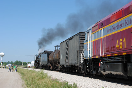The TripA picture after I arrived. The passengers were fed a light breakfast in First Class prior to our departure at 7:53 AM this morning, with Iowa Interstate GP38-2 714 pulling us to the Yocum Connection.